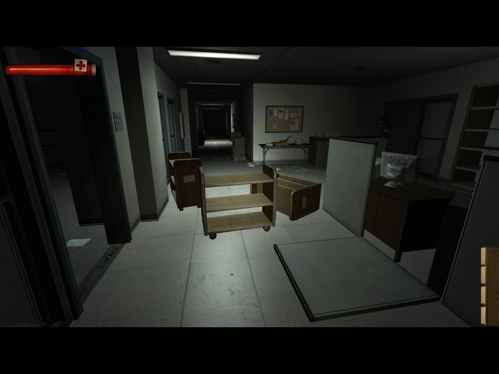 Из отрицательных сторон графики в игре отмечаем недостатки дизайна: несколько однообразные indoor уровни и фактическое отсутствие outdoor, недостаточная геометрическая детализация уровней и моделей персонажей, низкое разрешение некоторых текстур, отсутствие действительно современных эффектов, таких, как parallax occlusion mapping, который по зубам и Xbox 360 и современным ПК. Один из самых явных недостатков — отсутствие возможности рендеринга в HDR диапазоне. Большинство технологичных игр это умеют, а в нашем случае, похоже, что HDR рендеринг с использованием форматов повышенной точности не поддерживается ни игрой, ни движком. А ведь те же постфильтры, рассчитываемые в повышенном динамическом диапазоне, могли быть более высокого качественного уровня… Не говоря про настраиваемый tonemapping, который весьма пригодился бы в такой темной игре.