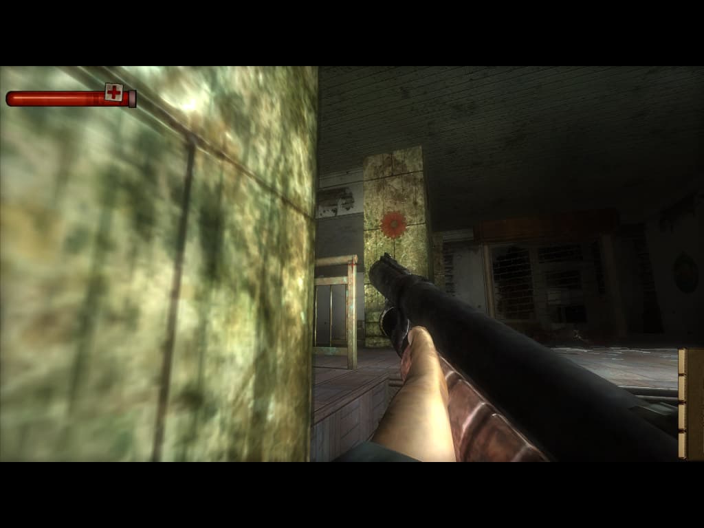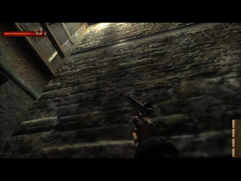 Среди всех поверхностей отдельно выделим те из них, которые используют parallax mapping. Таких поверхностей в игре не так много, как можно предположить, но кирпичные стены по всей игре эту технику используют:К сожалению, ко всем остальным поверхностям эффект не применяется, а ведь он мог быть применен на гораздо большем количестве объектов и они реально бы выглядели лучше при очень малом падении производительности. По сравнению с F.E.A.R., тут нет даже parallax mapping для дырок в стенах от попадания пуль. Впрочем, патронов в игре крайне мало и это не бросается в глаза, обычно их экономят и все пули попадают в тела врагов :).