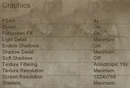 Остается добавить, что на тестовой системе все максимальные настройки, кроме мягких теней, играбельны в разрешении 1024x768 с включенным антиалиасингом уровня 4x и анизотропной фильтрацией 16x. Среднее количество кадров в секунду при этом по всей игре составляет около 60 FPS, а минимальное не опускается ниже 25-30, кроме редких моментов динамической подгрузки контента. Для больших разрешений и уровней антиалиасинга нужны более производительные видеокарты или системы CrossFire/SLI. На системах среднего уровня с видеокартами типа NVIDIA GeForce 7600 GS и ATI RADEON X1600 PRO для достижения играбельного FPS придется снижать некоторые настройки.