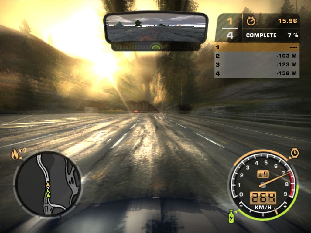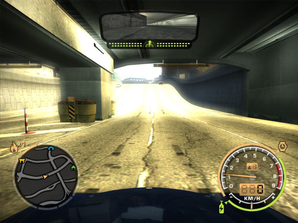 Эффект больше всего заметен при выезде из тоннелей или из-под мостов. Сначала интенсивность свечения ярких поверхностей велика, но постепенно яркость снижается. Это похоже на HDR рендеринг и эффект от работы оператора tone mapping, но без использования формата хотя бы с 16-бит на цвет добиться «настоящего» HDR не получится, некоторые и 16-битные форматы называют лишь средним динамическим диапазоном. Поэтому можно сказать, что в Need For Speed: Most Wanted применяется хитрая эмуляция, на самом деле, даже снижающая количество одновременно видимых цветов. А зря, ведь расчеты постфильтров в HDR всегда выигрывают в качестве, ведь можно было бы и дать выбор пользователям…
