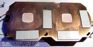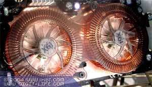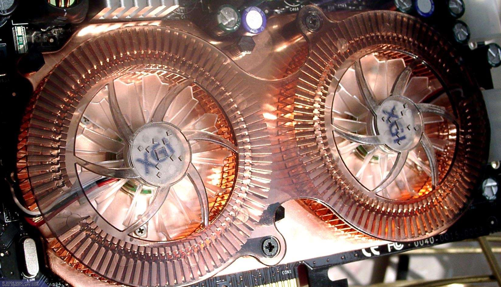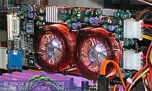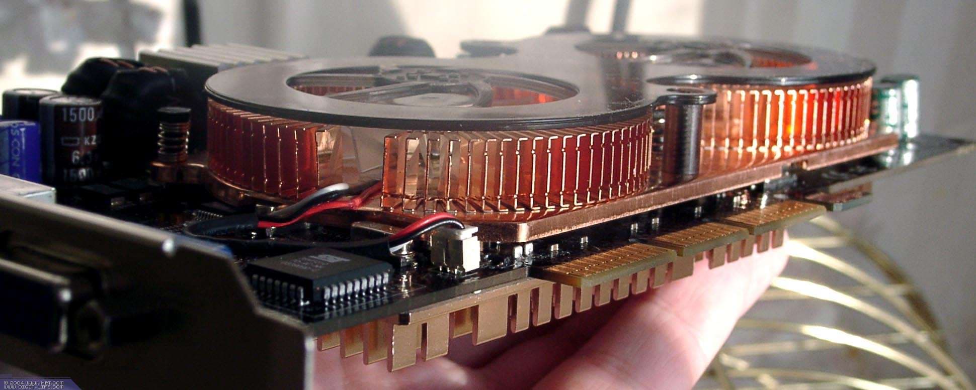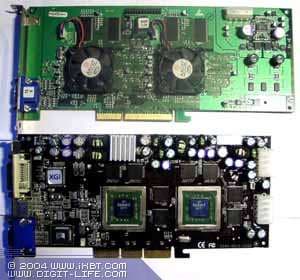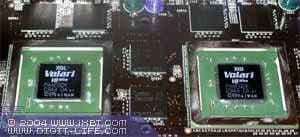 Они изготовлены по 0.13 мкм техпроцессу на мощностях UMC. Упаковка дорогая — FCBGA, однако столь сложные кристаллы имеющие очень высокий нагрев в другой упаковке выпустить нереально. Согласно официальныи данным, каждый чип потребляет около 20Вт, но главным пожирателем электричества является конечно сильногреющаяся DDR-II память. В целом можно ожидать, что карта потребляет около 120Вт(!), что превышает потребление самых быстрых продуктов ATI и NVIDIA. Поэтому, она требует дополнительного питания, да еще и через два коннектора (блок питания карты весьма сложен).