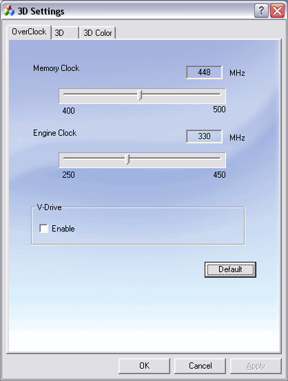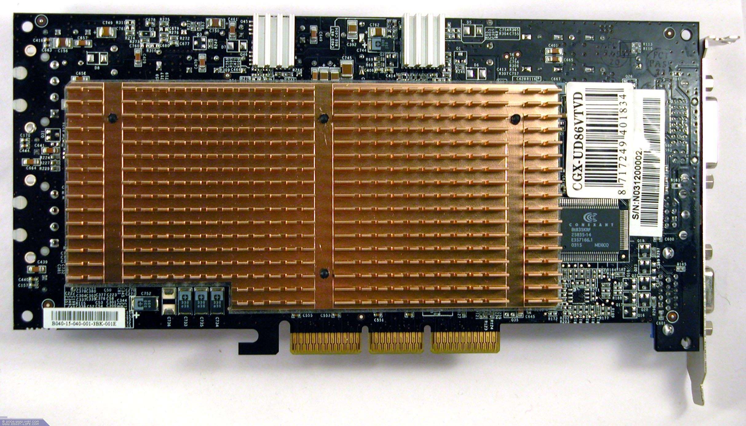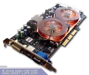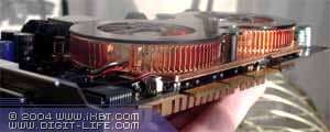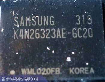 | На карте установлены микросхемы памяти Samsung марки K4N26323AE-GC20, форм-фактора BGA. Максимальная частота работы — 500 (1000) МГц, время выборки — 2 нс. По умолчанию память работает на частоте 450 (900) МГц, ядро — 330 МГц. (обратим внимание, что серийные карты от Club3D имеют пониженные частоты по ядру 330 МГц вместо обещанных 350 МГц | ![]() |