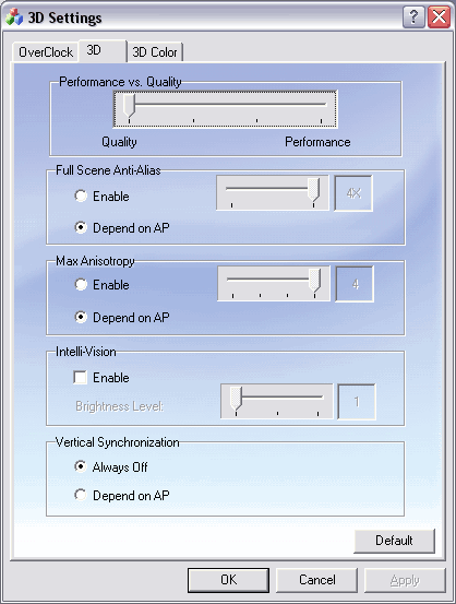 Напомню, что Volari поддерживает только 4х степень анизотропной фильтрации.