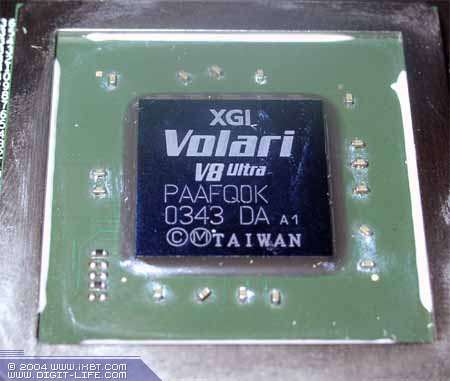 - Volari V8 (V8 Ultra) — DirectX 9.0, 8 пикселей за такт максимум (8 конвейеров, 4 в случае пиксельных шейдеров), два вершинных процессора, 8 значений текстур за такт, до 350 МГц частота ядра, 110 миллионов транзисторов, 128бит интерфейс памяти;