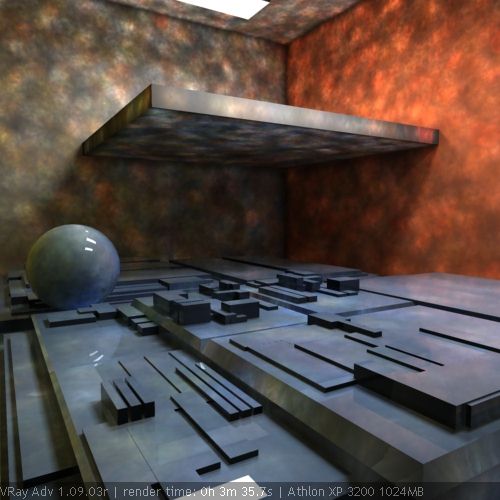 Метод расчета irradiance map выполняется гораздо быстрее direct computation и без потери качества изображения. Поэтому, он является основным для расчета первого диффузного отскока. Адаптивный расчет по выбираемым точкам — очень интересная находка VRay, являющаяся его существенным преимуществом. Так, расчет GI при помощи irradiance map + photon map в VRay аналогичен расчету GI в mental ray при помощи сочетания фотонных карт и final gathering. Однако, final gathering, в отличие от irradiance map, выбирает точки для расчета равномерно на основе заданного значения радиуса и без учета изменения цвета и геометрии. Поэтому, для получения сопоставимых по качеству с irradiance map результатов, final gathering должен использовать большее количество точек, а значит — выполняет расчеты медленнее.