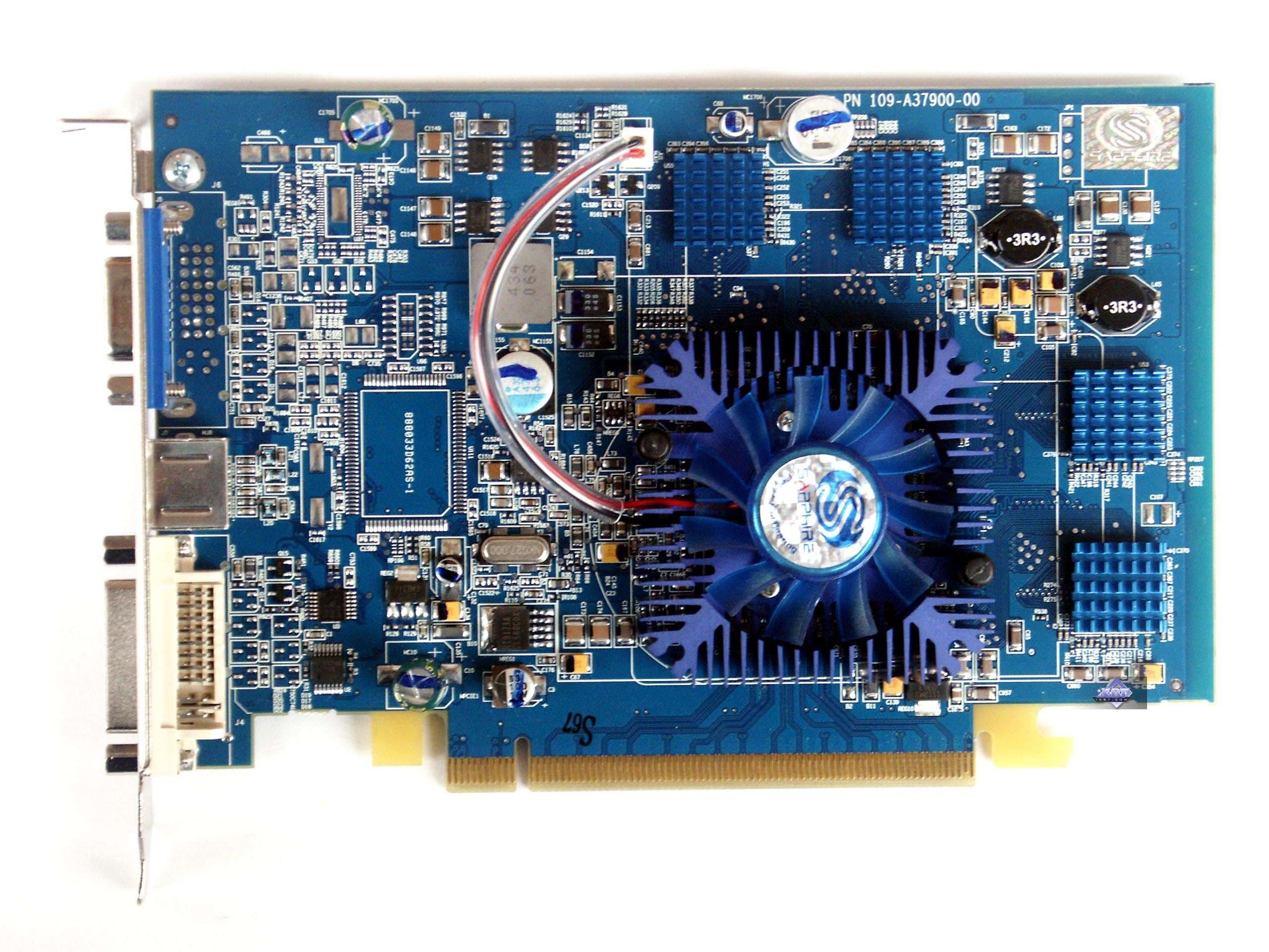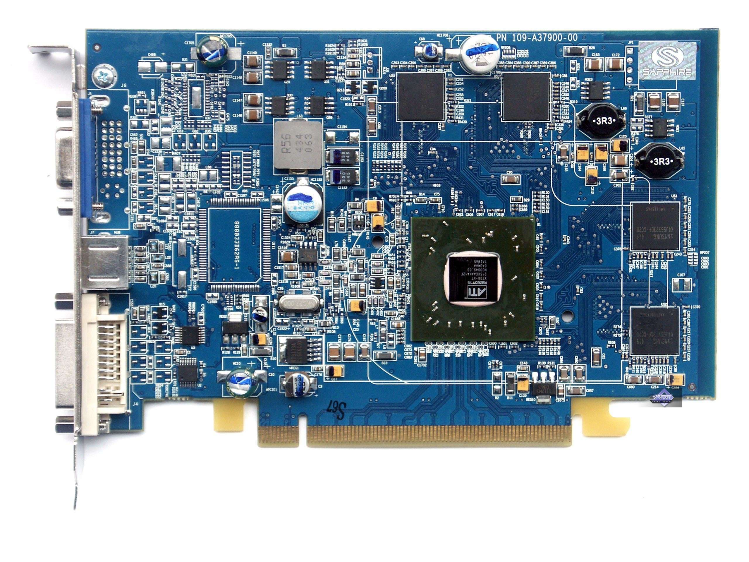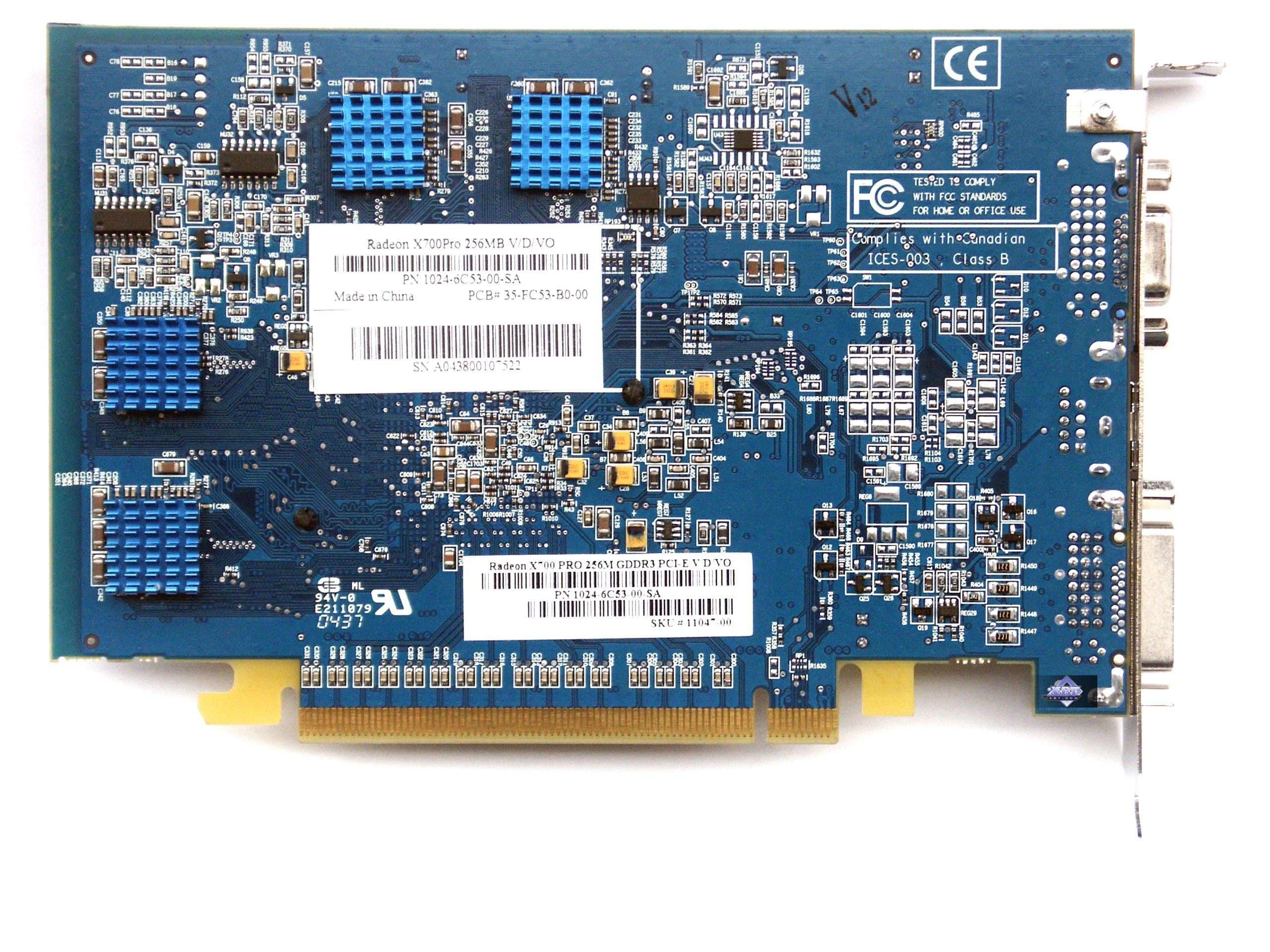 Очевидно, что перед нами по сути тот же X700 XT, но с пониженным клокингом. PCB ничем не отличается. Лишь лазурный цвет лака выдает, что карта произведена на заводе Sapphire, руководство которой не так давно приняло решение об использовании синего цвета окраски своих карт.
