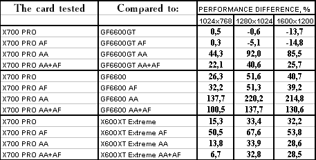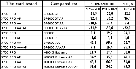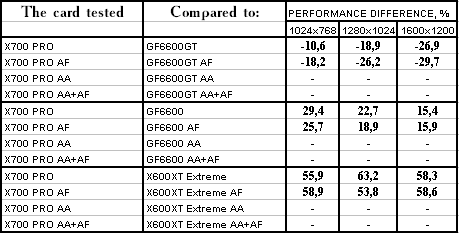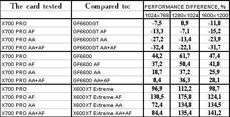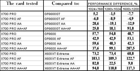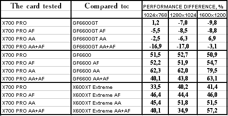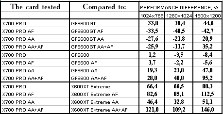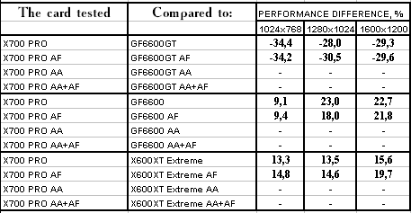 - RADEON X700 PRO — против GeForce 6600GT — проиграли, и с треском.