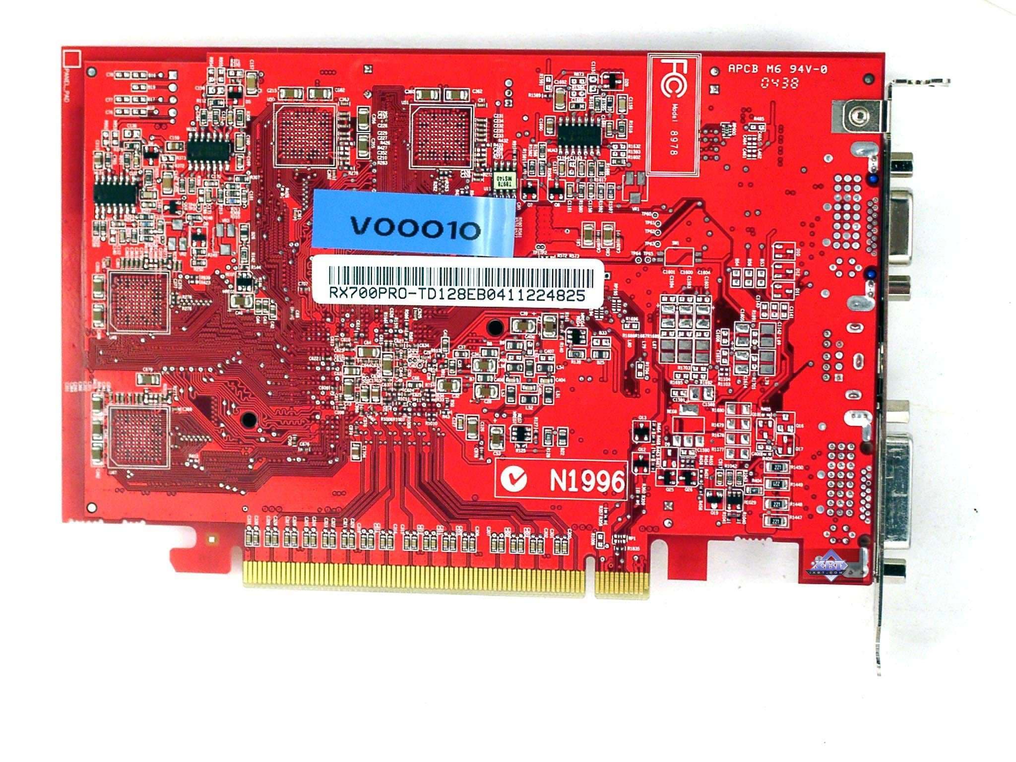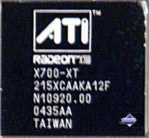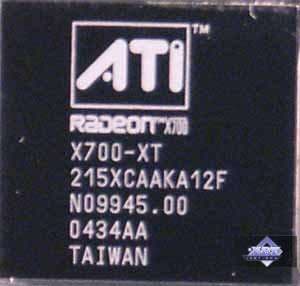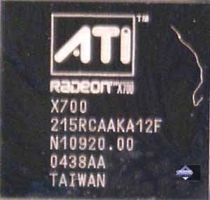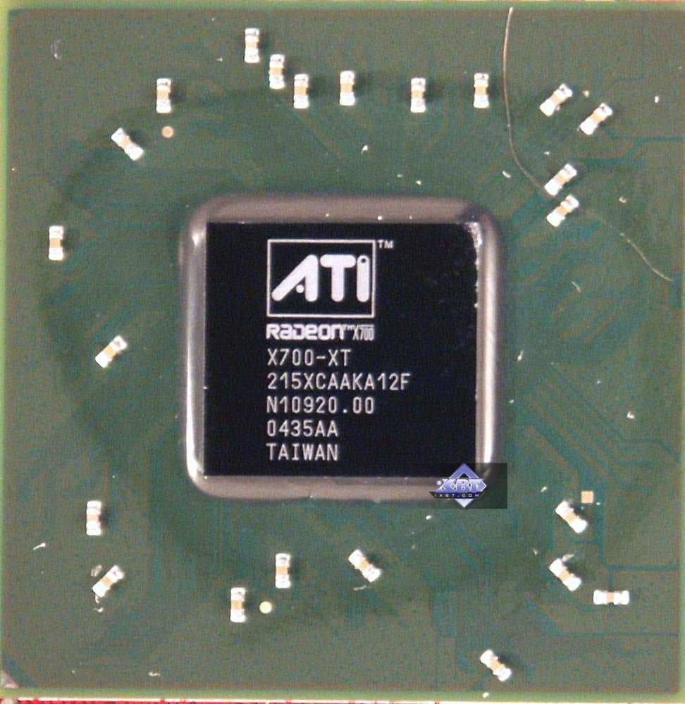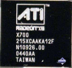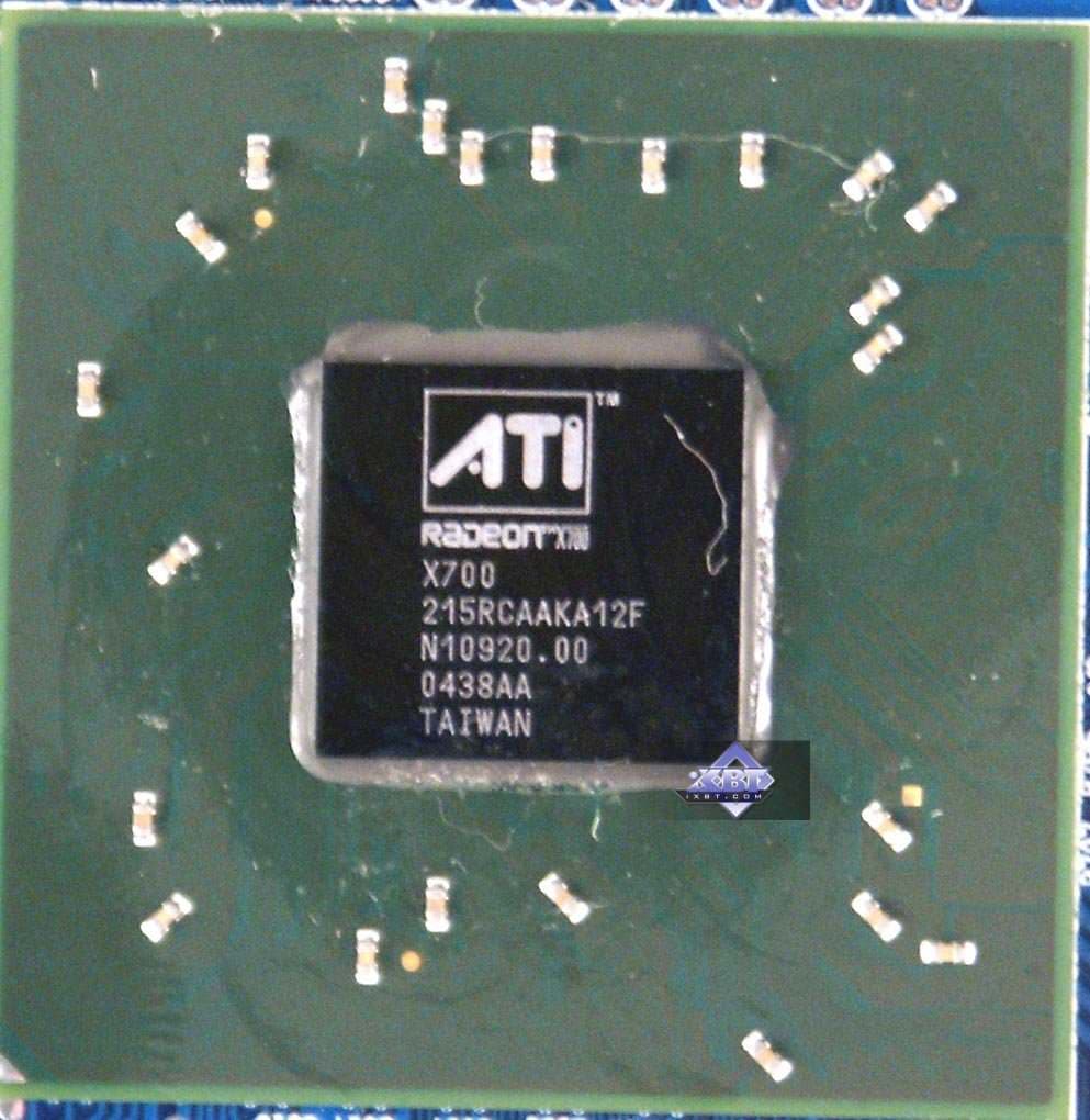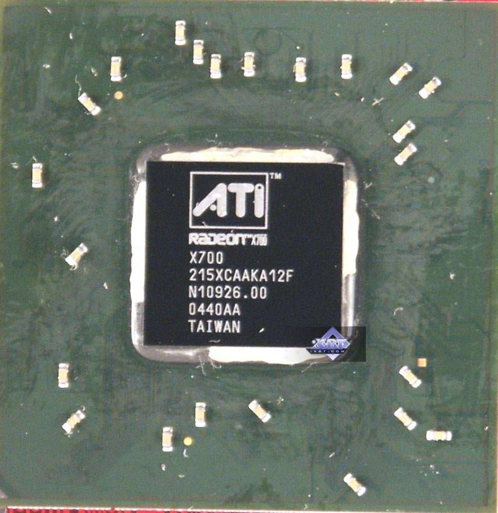 | Карты имеют интерфейс PCI-Express x16, 128 МБ (MSI RX700 PRO-TD128E 128MB; PowerColor RADEON X700 XT 128MB) и 256 МБ (ASUS Extreme AX700PRO 256MB; Gigabyte RADEON X700 PRO 256MB; HIS RADEON X700 PRO IceQ Turbo 256MB) памяти GDDR3 SDRAM, размещенной в 4-х или 8-ми микросхемах. Микросхемы памяти Samsung. Время выборки у микросхем памяти 2.0 ns, что соответствует частоте работы 500 (1000) МГц, а память работает на всех X700 PRO-картах на частоте 430 (860) МГц, на PowerColor RADEON X700 XT 128MB на частоте 525 (1050) МГц. Частота работы GPU на всех X700PRO-картах — 425 MHz, на PowerColor RADEON X700 XT 128MB — 475 МГц. Шина обмена с памятью — 128 bit. Число пиксельных конвейеров × число текстурных блоков — 8х1. Число вершинных конвейеров — 6. | ![]() |