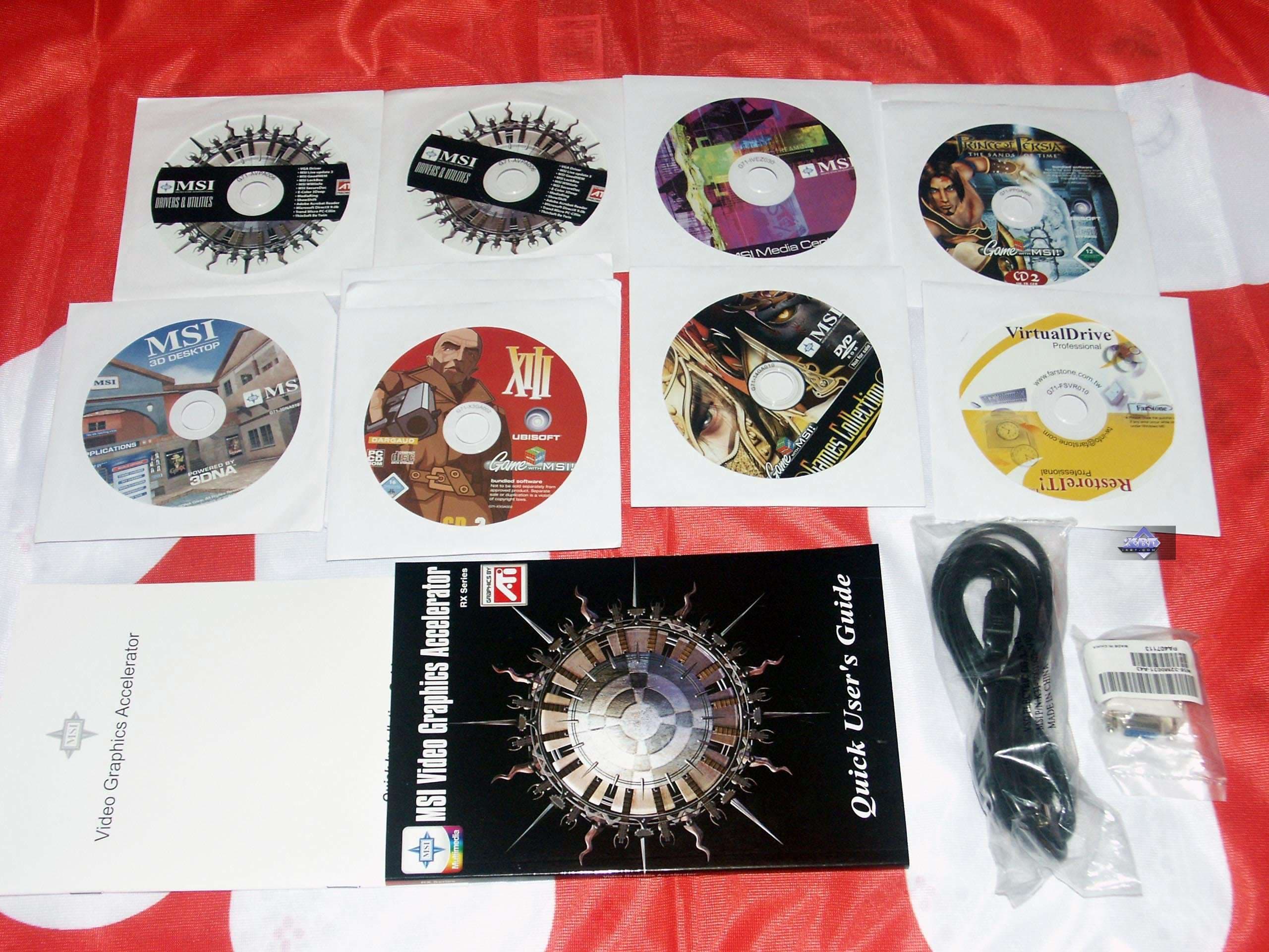 Комплектация. Во всех комплектах можно найти руководство пользователя, диск с драйверами и утилитами, удлинители TV, переходник DVi-to-d-Sub, переходник S-video-to-RCA.