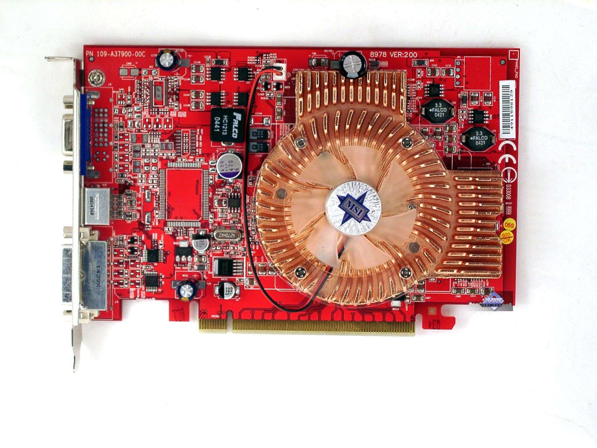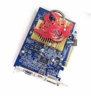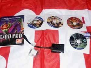 - MSI RX700 PRO-TD128E 128MB — неприметная карта среди таких соперников. Система охлаждения не меняется годами, кулер добротный, но небольшой шум имеется. Однако комплект поставки весьма шикарный, хотя и уже успел потускнеть, ибо игры в нем давно не обновлялись. Нет VIVO. Качество 2D в 1600х1200 при 85 Гц — хорошо. Разгон: чуть недотягивает до частот X700 XT.
