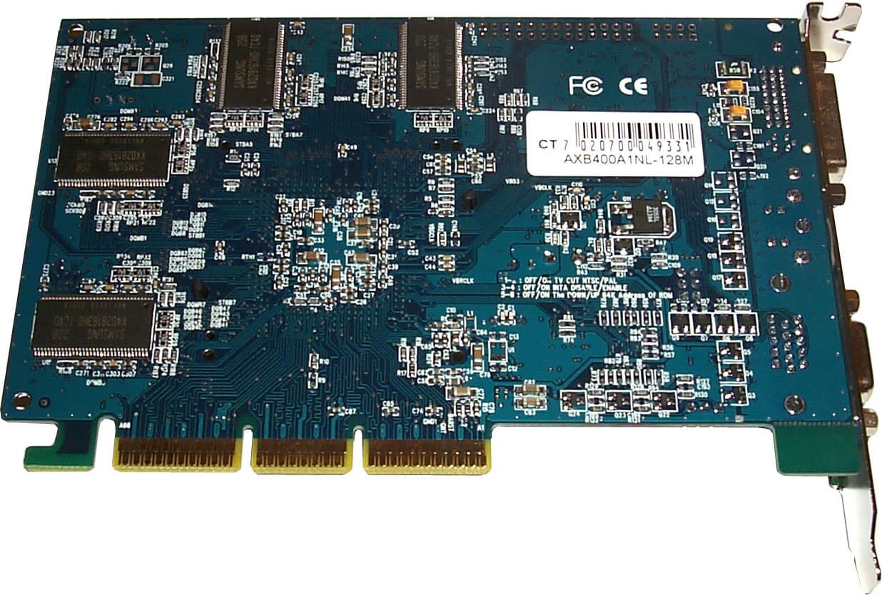 Что сразу можно сразу интересного отметить… Ну прежде всего то, что опытному тестеру даже не надо смотреть на маркировку микросхем памяти, достаточно глянуть на дизайн и увидеть, что в 8-ми микросхемах DDR SDRAM "старой" упаковки уместить 128 мегабайт памяти может только Samsung (практически все карты с таким объемом памяти и "старым" дизайном, не предполагающим комплектацию микросхемами в BGA-упаковке, имеют память от Samsung).