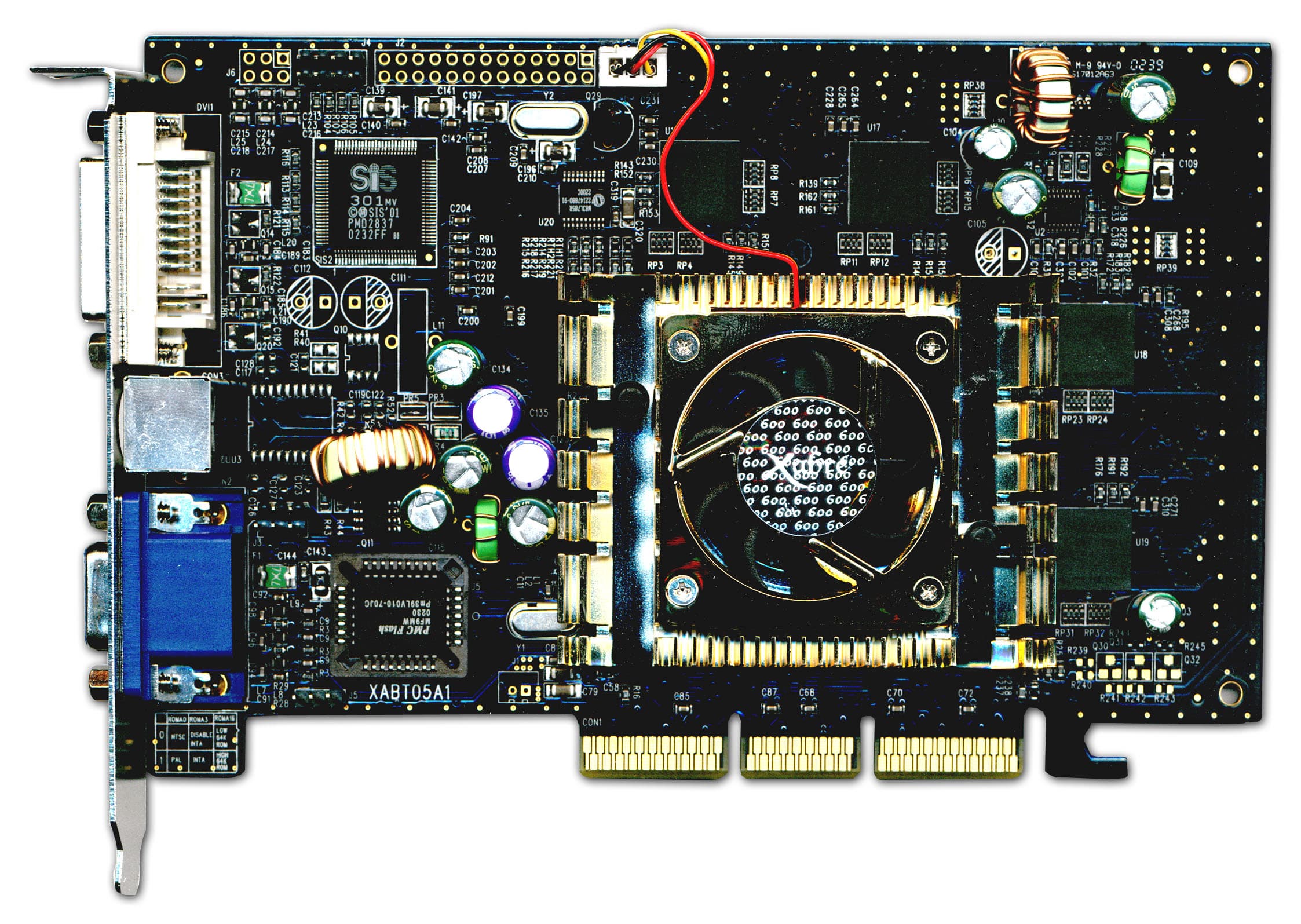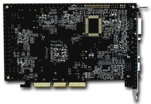 Как мы видим, дизайн сильно отличается от прежнего для Xabre 400. Прежде всего это связано с использованием новых микросхем памяти в BGA-упаковке. Поэтому весь комплект памяти без труда уместился на лицевой стороне карты. Здесь же и традиционный SIS 301 — сопроцессор для TV-out и вывода на второй монитор