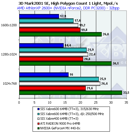 Итак, Xabre 600 быстрее Xabre 400. Но, собственно все. До NVIDIA и тем более до ATI ему не хватает, впрочем, не хватает совсем немного. Далее мы посмотрим, скажется ли эта нехватка на конкретных приложениях.