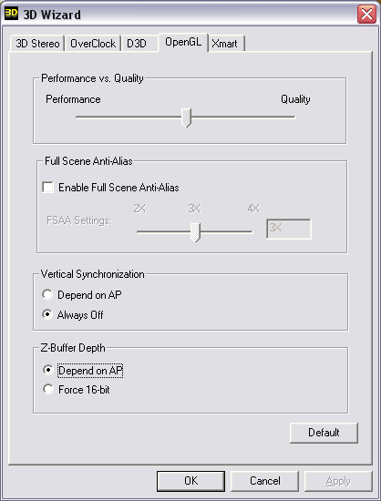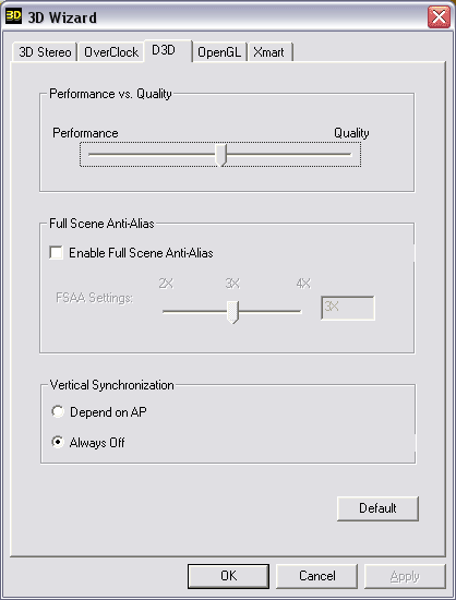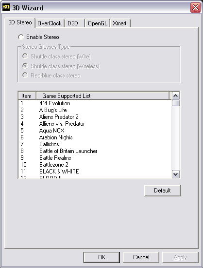 Ну и, конечно же, нас интересует утилита 3D Wizard, которая имеет ряд панелей настроек.