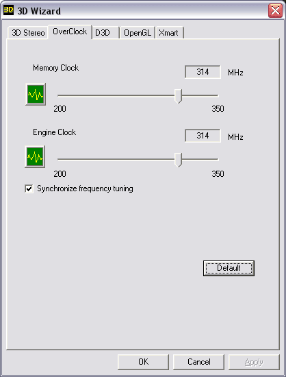 Мы видим, что потенциал у Xabre 600 неплохой, в отличие от предшественника, который можно было заставить поднять частоты от силы на 25-30 МГц. Вероятно, можно было бы частоту поднять и выше, но поставляемая с драйверами утилита настройки 3d — 3D Wizard ограничивает разгон 350 МГц. А вот разгон по памяти где-то разочаровал, ибо 2.8ns микросхемы "не дотянули" даже до своих штатных частот работы. Разумеется, сами микрохемы не виноваты, а вина за такой слабый разгон лежит на разводке PCB.
