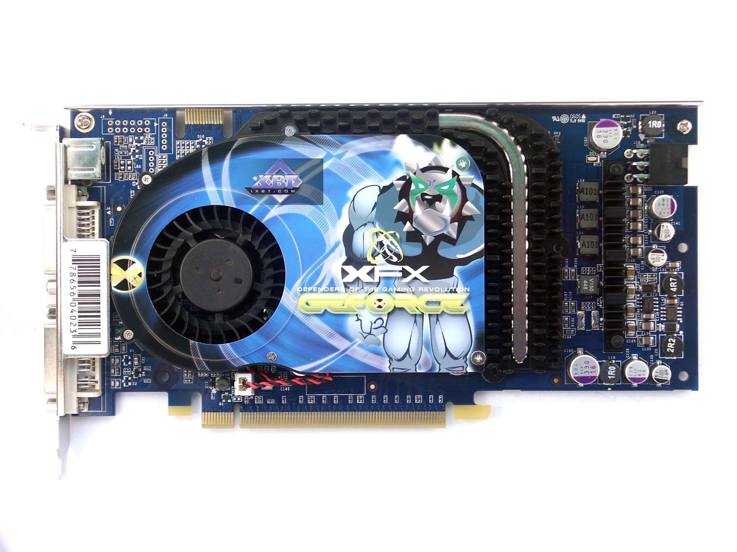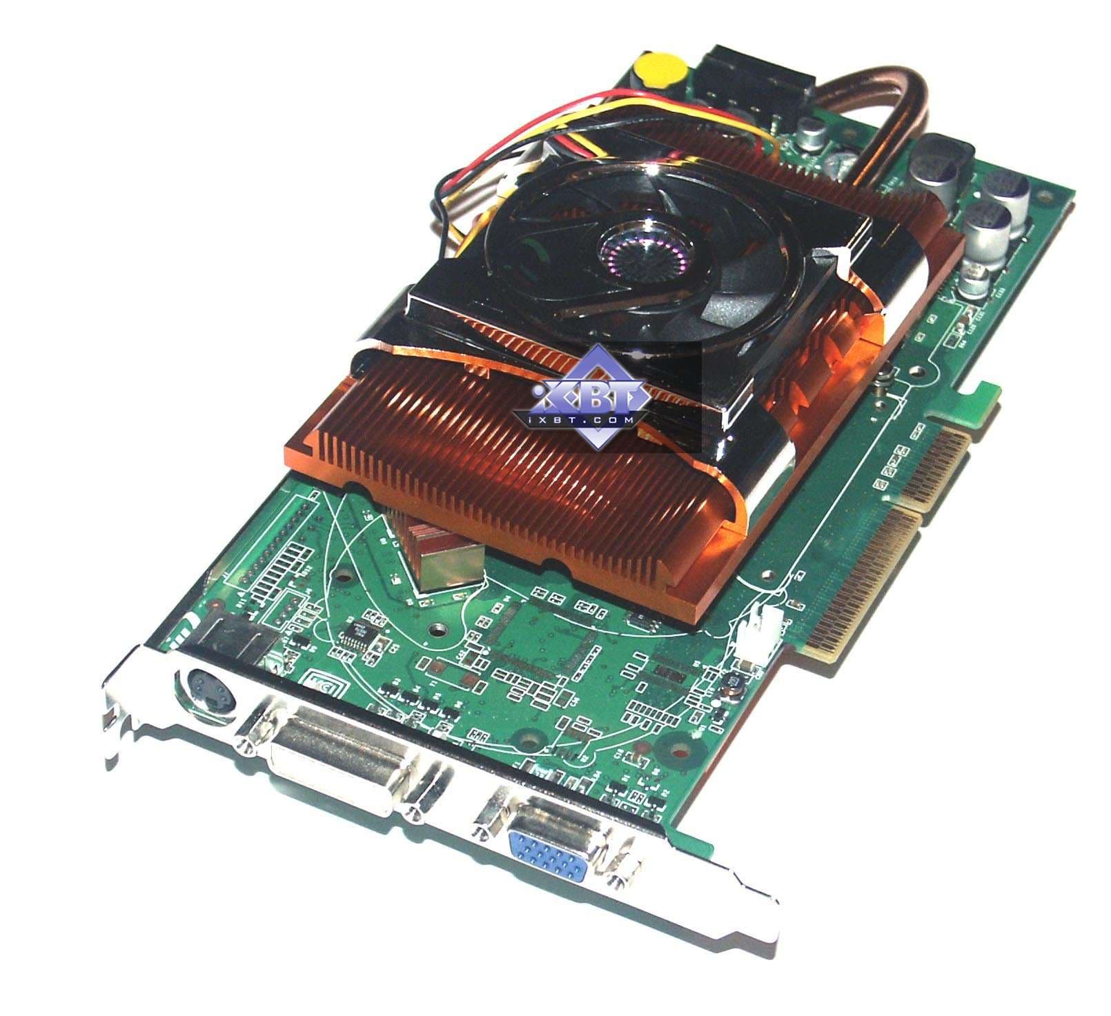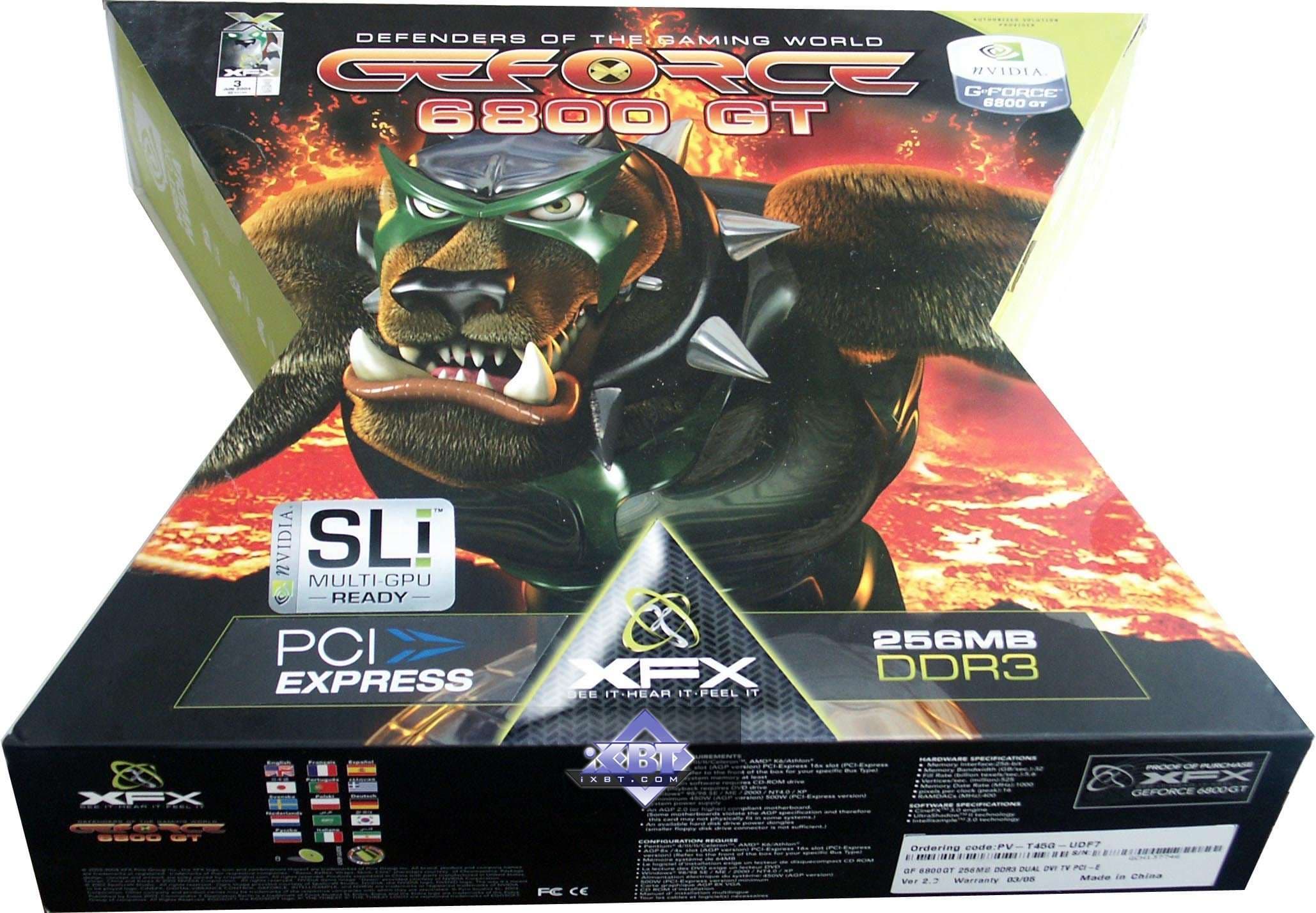 - XFX GeForce 6800 GT PCI-E 256MB — изделие, которое может легко составить конкуренцию более дорогому предыдущему продукту, поскольку разгон подобных карт вполне позволяет достичь частот, близких к 6800 Ultra. А цена весьма сильно меньше. По всем остальным параметрам карта не имеет нареканий, работоспособность отличная, качество в 2D отменное. И такой же минус в отношении планки жесткости, которая не дает доступа к разъему SLI.