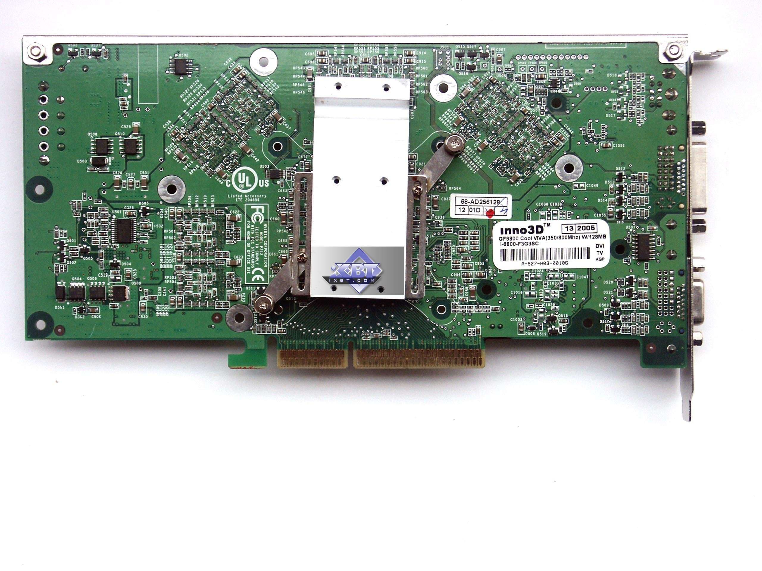 - Inno3D GeForce 6800 Premium Edition AGP 128MB &emdash; 375/900 MHz (при разблокировании конвейеров до 16/6 — разгон 360/900 MHz).