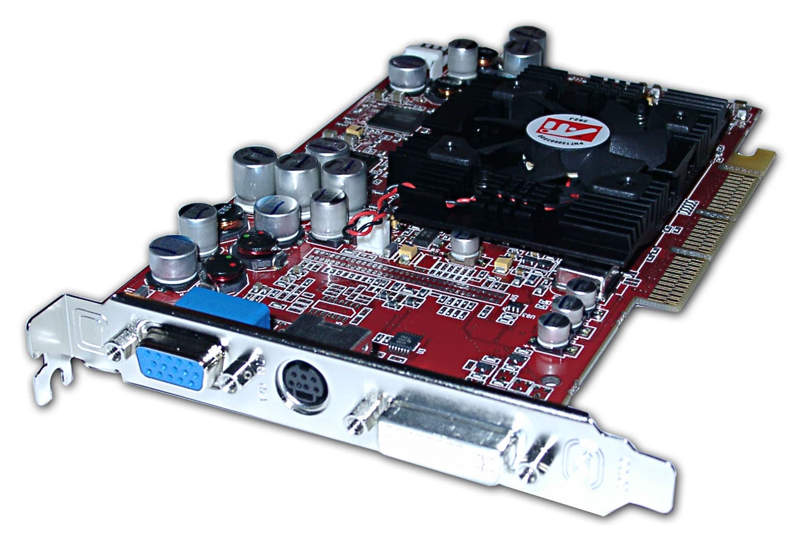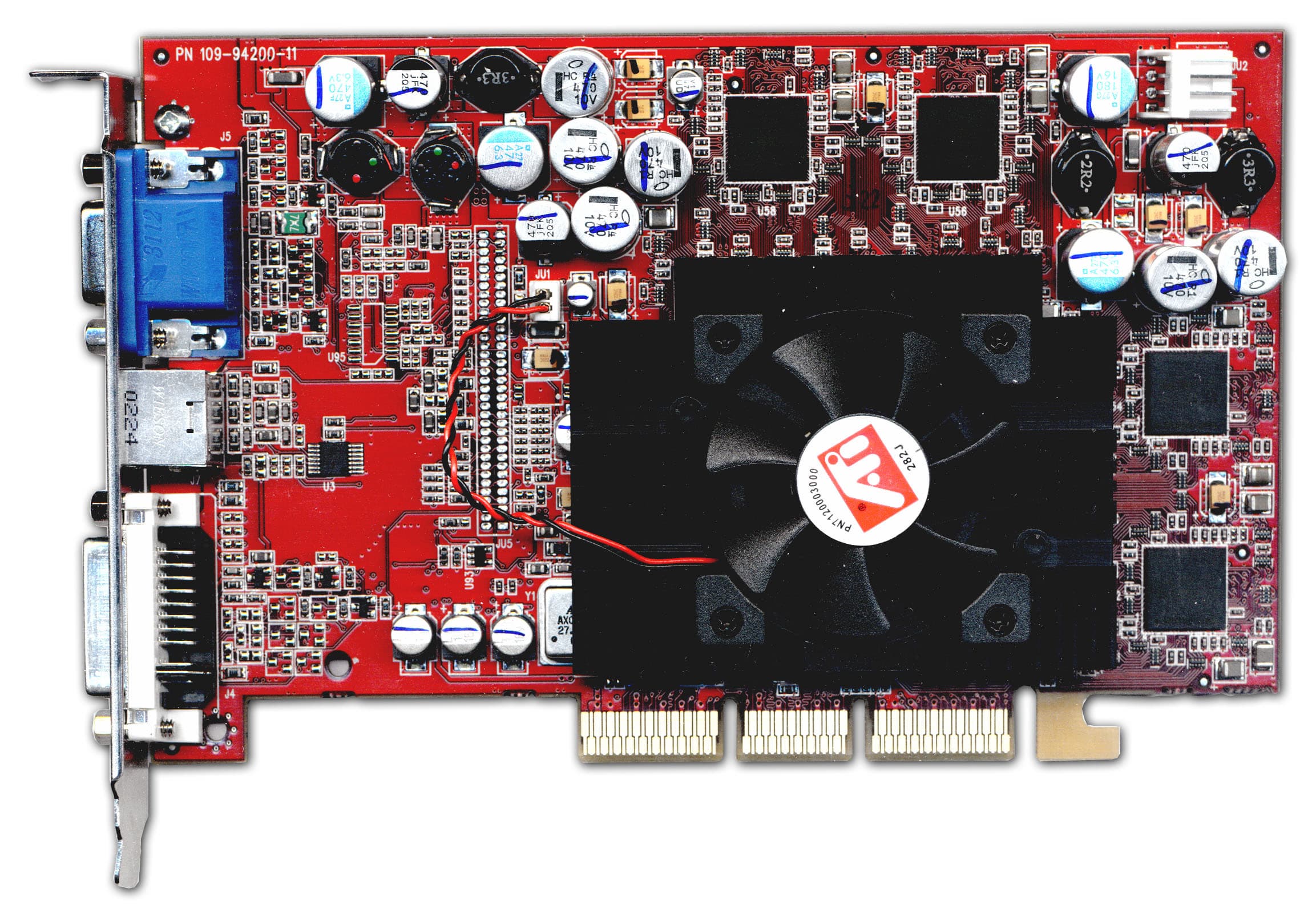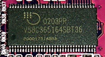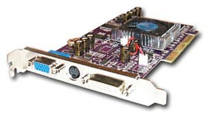 | Карта имеет интерфейс AGP x2/x4, 64 МБ памяти DDR SDRAM, размещенной в 8-ми микросхемах на обеих сторонах PCB. На видеокарте установлены модули памяти от Mosel Vitalic со временем выборки 3.6 ns, что соответствует частоте работы примерно 275 (550) МГц, память же работает на частоте 200 (400) МГц. GPU функционирует на обычной для RADEON 9000 частоте 250 МГц. | ![]() |