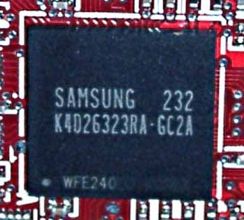 | Карта имеет интерфейс AGP x2/x4/x8, 128 МБ памяти DDR SDRAM, размещенной в 8-ми микросхемах на обеих сторонах PCB. На видеокарте установлены модули памяти от Samsung со временем выборки 2.8 ns, что соответствует частоте работы примерно 357 (714) МГц, но память работает на частоте 310 (620) МГц, что полностью отвечает стандарту для RADEON 9700 PRO. Да и GPU функционирует на стандартной частоте 325 МГц. | ![]() |