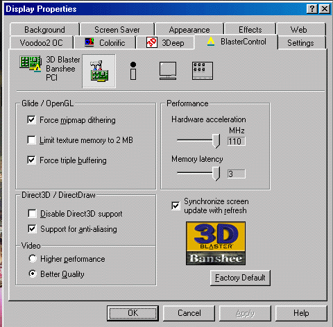 Настройки Creative 3D Blaster Banshee: тогда каждый производитель платы делал собственные драйверы