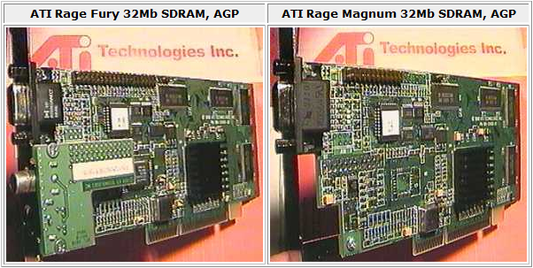 Две представителя семейства видеокарт на ATI Rage 128: Rage Fury и Rage Magnum