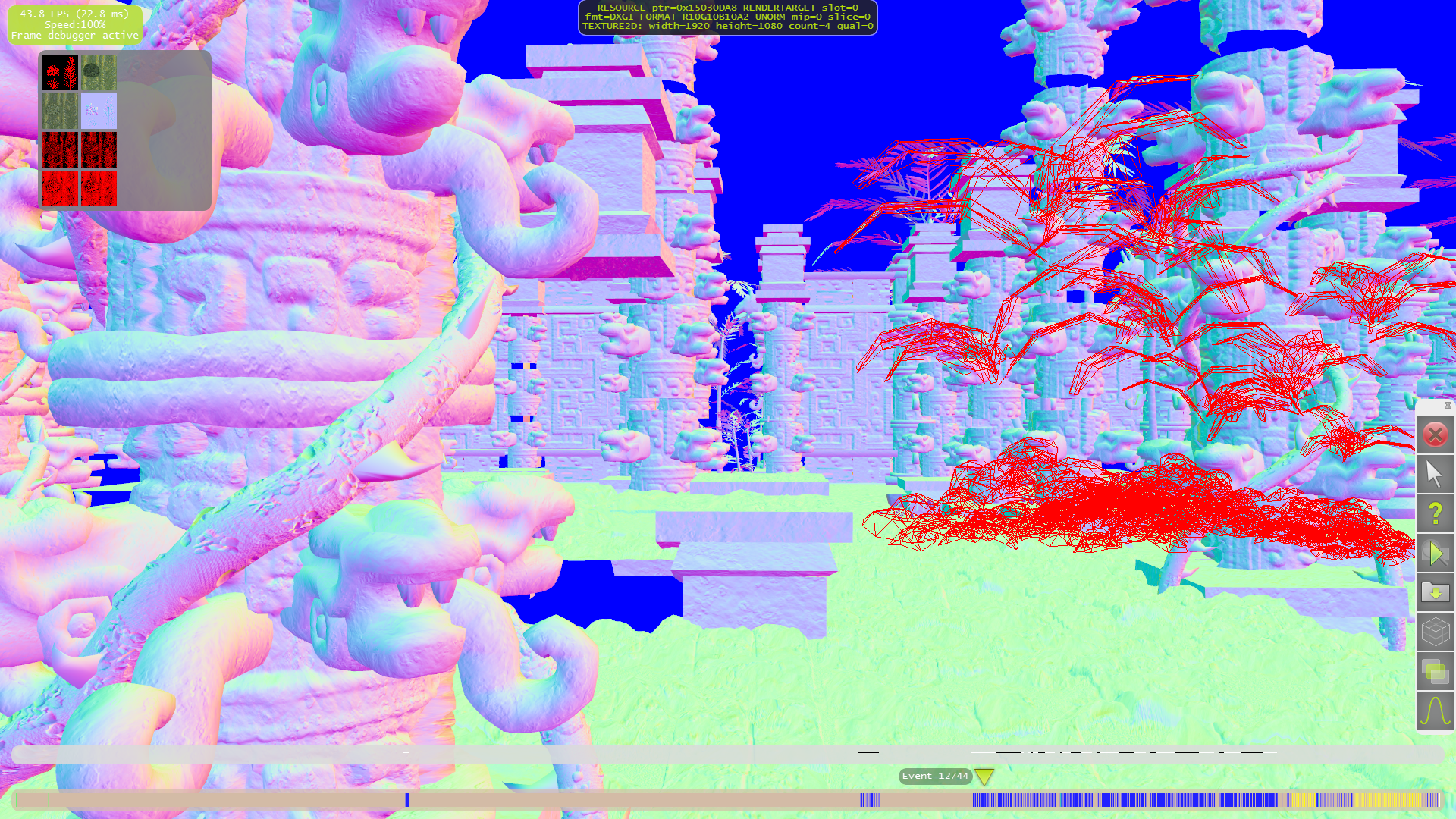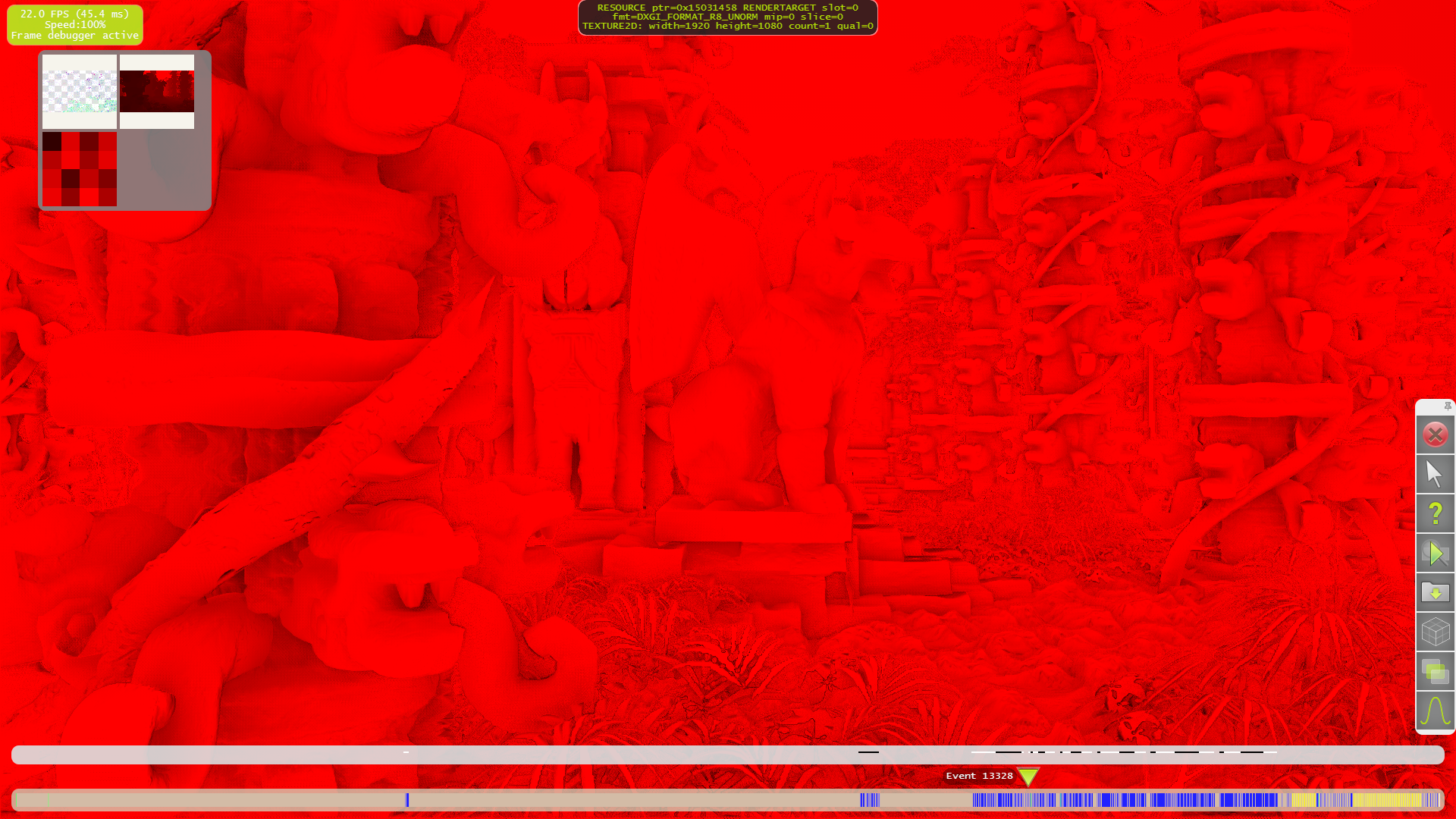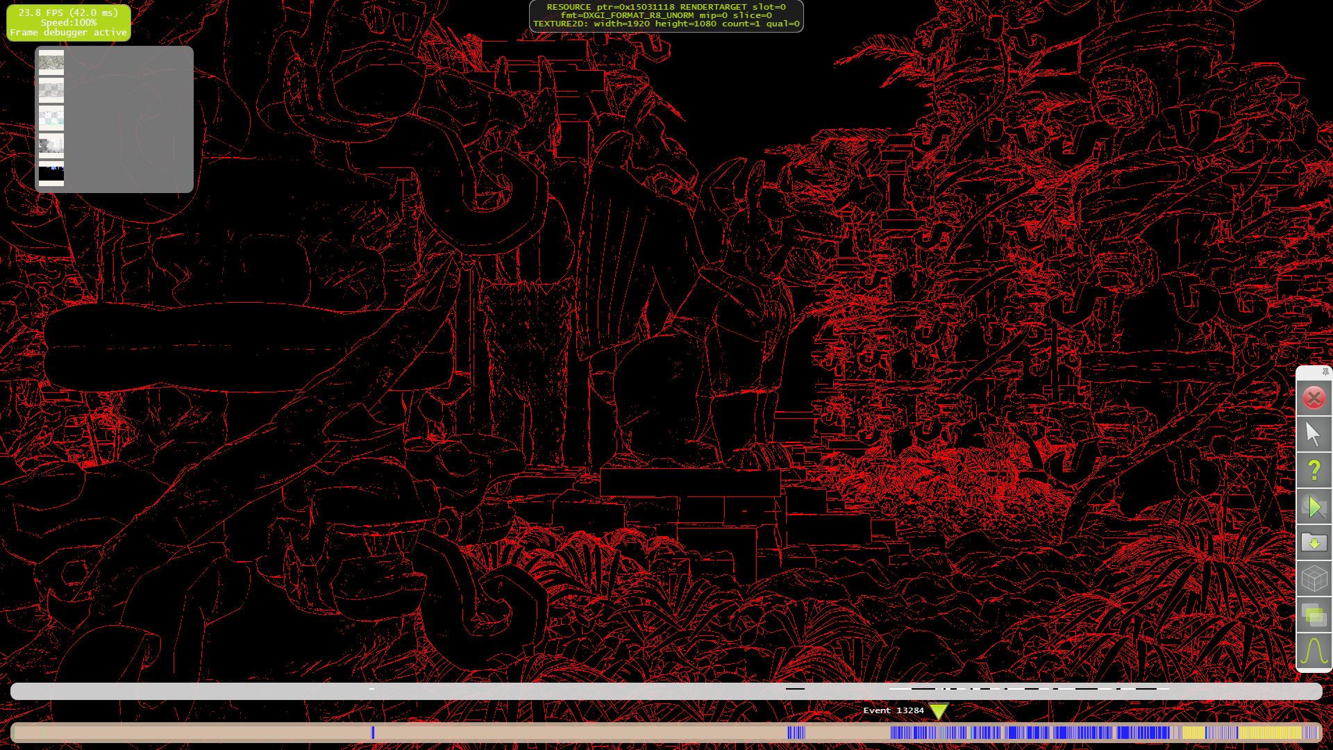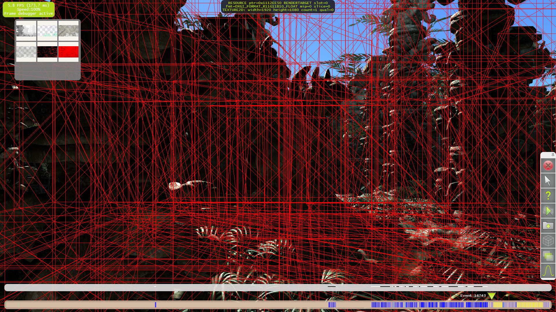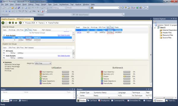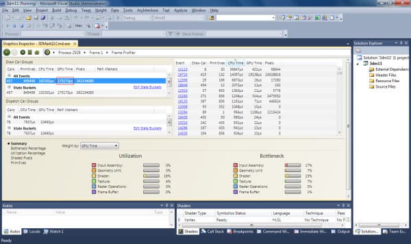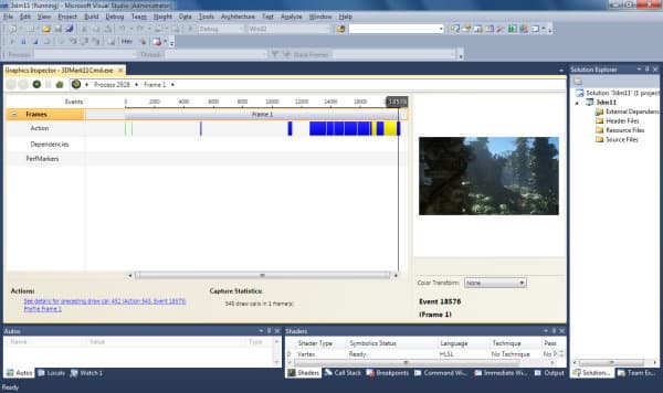 Но самой важной функцией Parallel Nsight для нас сегодня является профилирование кадра в «Frame profiler». Для подробного анализа нужно выполнить захват кадра и выполнить профилирование, которое займёт несколько минут, в течение которых приложение выполнит многократный рендеринг кадра с разными настройками для последующего анализа 3D разработчиком. Причём, в отличие от Nvidia NVPerfHUD, модификации исходного кода исследуемой программы не требуются, поэтому анализ доступен также и сторонним наблюдателям. Итак, приступим к нашему исследованию.