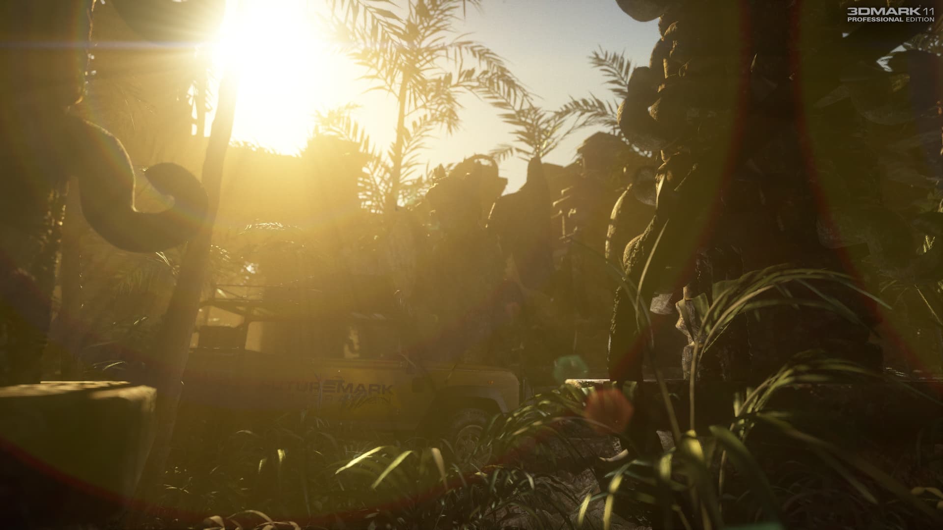 Эффект bloom давно известен по игровым приложениям, в его простых исполнениях он не требует много ресурсов. В случае 3DMark 11 используется быстрое преобразование Фурье (Fast Fourier Transform — FFT) при помощи вычислительного шейдера. Эффекты выполняются над уменьшенным вчетверо изображением, фильтр постобработки одновременно накладывает эффекты: blur, streak, flare и цветное гало. Дополнительно применяется ещё и постфильтр, имитирующий оптические отражения.