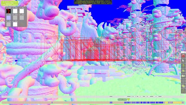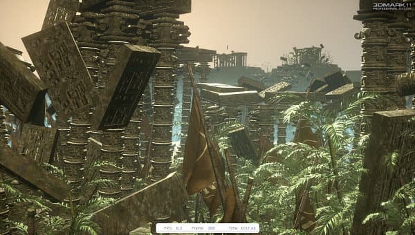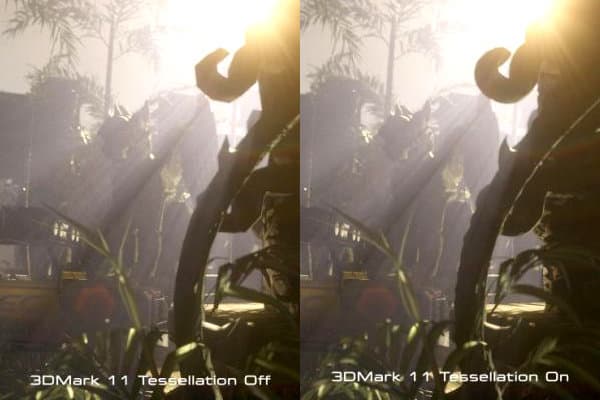 В 3DMark 11 используются алгоритмы тесселяции и нагрузка на геометрические блоки, похожие на те, что уже применяются в играх, и даже выше. В сцене High Temple тесселяция используется на многочисленных растениях, а также каменных статуях и колоннах. В сцене Deep Sea тесселируются поверхности дна и кораллы, а также рукотворные объекты, вроде труб и останков затонувшего корабля. На картинке это наглядно видно: