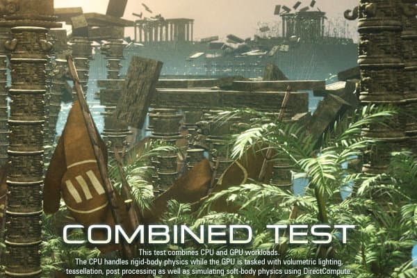 Это комбинированный тест с одновременной нагрузкой на GPU и CPU. В нём также используется физика твёрдых тел со средним количеством объектов, выполняемая на CPU, а также имитируется поведение тканей при помощи движка Bullet, работающего через DirectCompute на GPU. Графическая нагрузка в тесте средняя, это касается всего: освещения, тесселяции и постобработки.