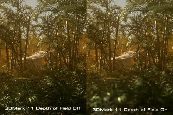 До выхода DirectX 11 эффект имитации глубины резкости в играх чаще всего был примитивным blur на дальних и ближних объектах, а возможность добавления дополнительных эффектов появилась лишь недавно. И чем дальше, тем более продвинутый эффект DOF мы видим в игровых приложениях. В качестве наиболее ярких примеров можно привести постобработку в Metro 2033 и Just Cause 2 (при помощи CUDA). А в 3DMark 11 эффект виден во всех тестах, кроме простого физического.
