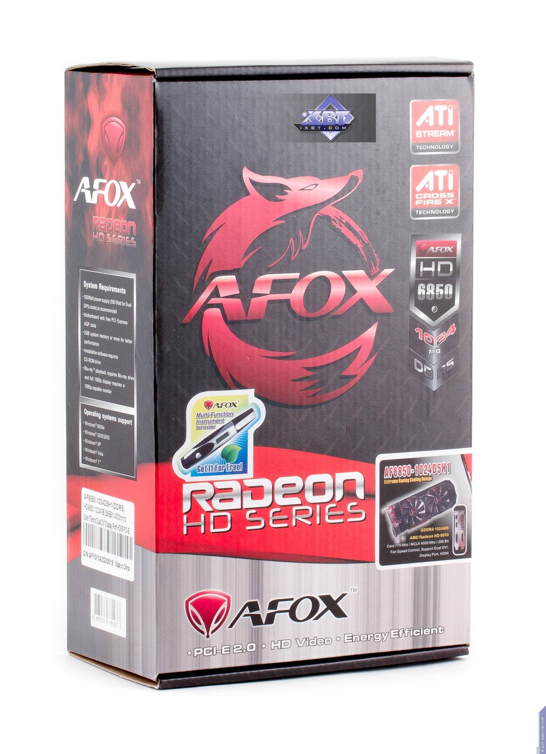 AFox Radeon HD 6850 1024 МБ 256-битной GDDR5 PCI-E (AF6850-1024D5H1) — отличный вариант серии 6850, имеет все шансы на успех. Мало того, что сам ускоритель Radeon HD 6850 весьма удачен и выгоден, так еще и эта карта обладает прекрасной СО, а также всеми нужными гнездами вывода.