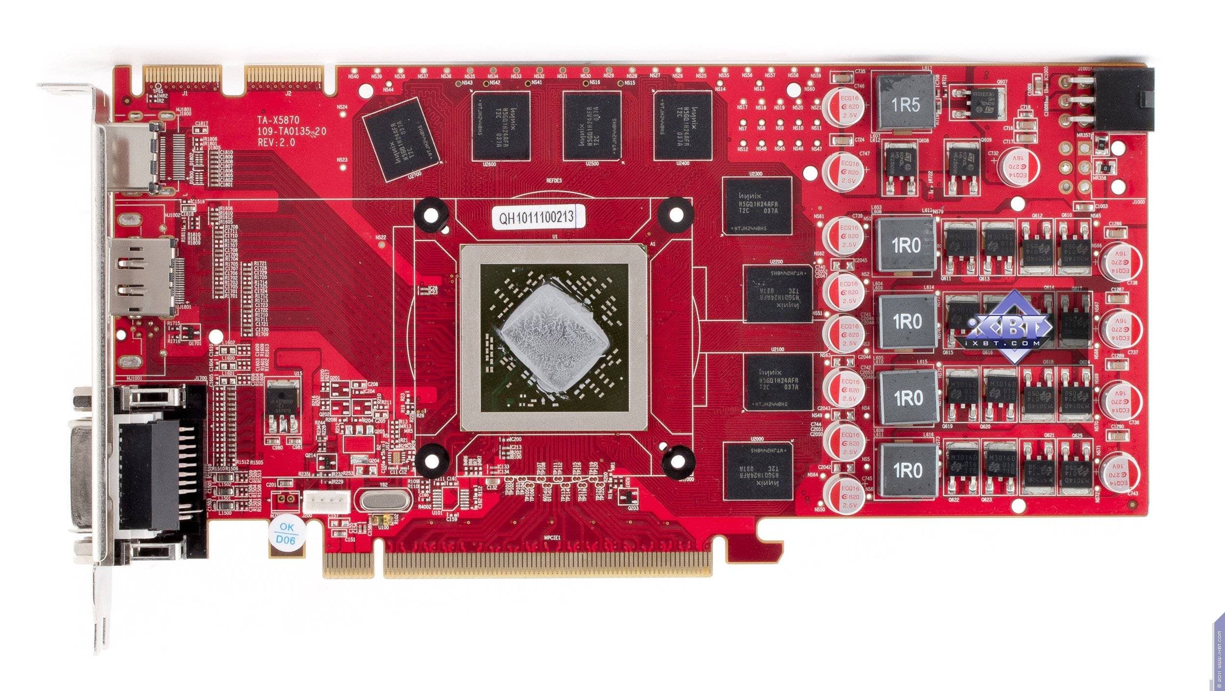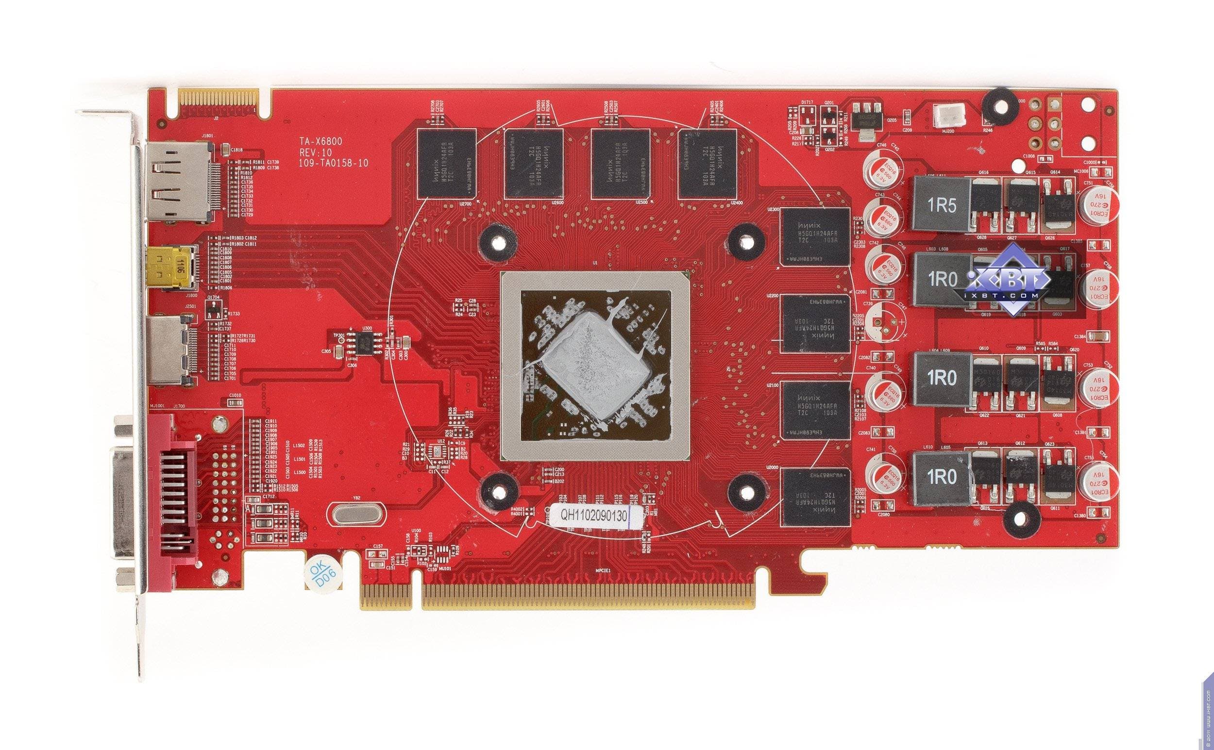Даже нет особого смысла говорить, что все три продукта — результат кропотливой умственной работы (ну, не только умственной: наверно, еще и немного физической :) местных инженеров. Лишь расположение микросхем памяти вокруг ядра напоминает об эталонном дизайне. Особое внимание уделим карте 6850 Slim. Это первая в мире однослотовая плата на базе Radeon HD 6850, при этом она не нуждается в дополнительном питании! То, что плата занимает в системном блоке всего 1 слот — это занимательно, но не столь революционно. А вот то, что такой продукт обходится без доппитания — это уникально. Такой дизайн карты стал возможен благодаря спецификациям PCI-E 2.0, в которых порог потребления энергии через слот PCI-E был поднят до 300 Вт. Как известно, 6850 максимально может потреблять до 130 Вт, так что на материнских платах, поддерживающих PCI-E 2.0, эта карта, в теории, должна работать без проблем. Мы специально проверили работоспособность нашего экземпляра 6850 Slim без дополнительного питания в разных материнских платах (с поддержкой PCI-E 2.0), и проблем действительно не было. Ускоритель работал нормально, и получалось, что слот x16 пропускал через себя очень большие токи (суммарная мощность была до 130 Вт). Разумеется, мы не рекомендуем устанавливать такой ускоритель в старые системы с материнскими платами, выпущенными до выхода спецификаций PCI-E 2.0, где лимит потребления через слот — 75 Вт.