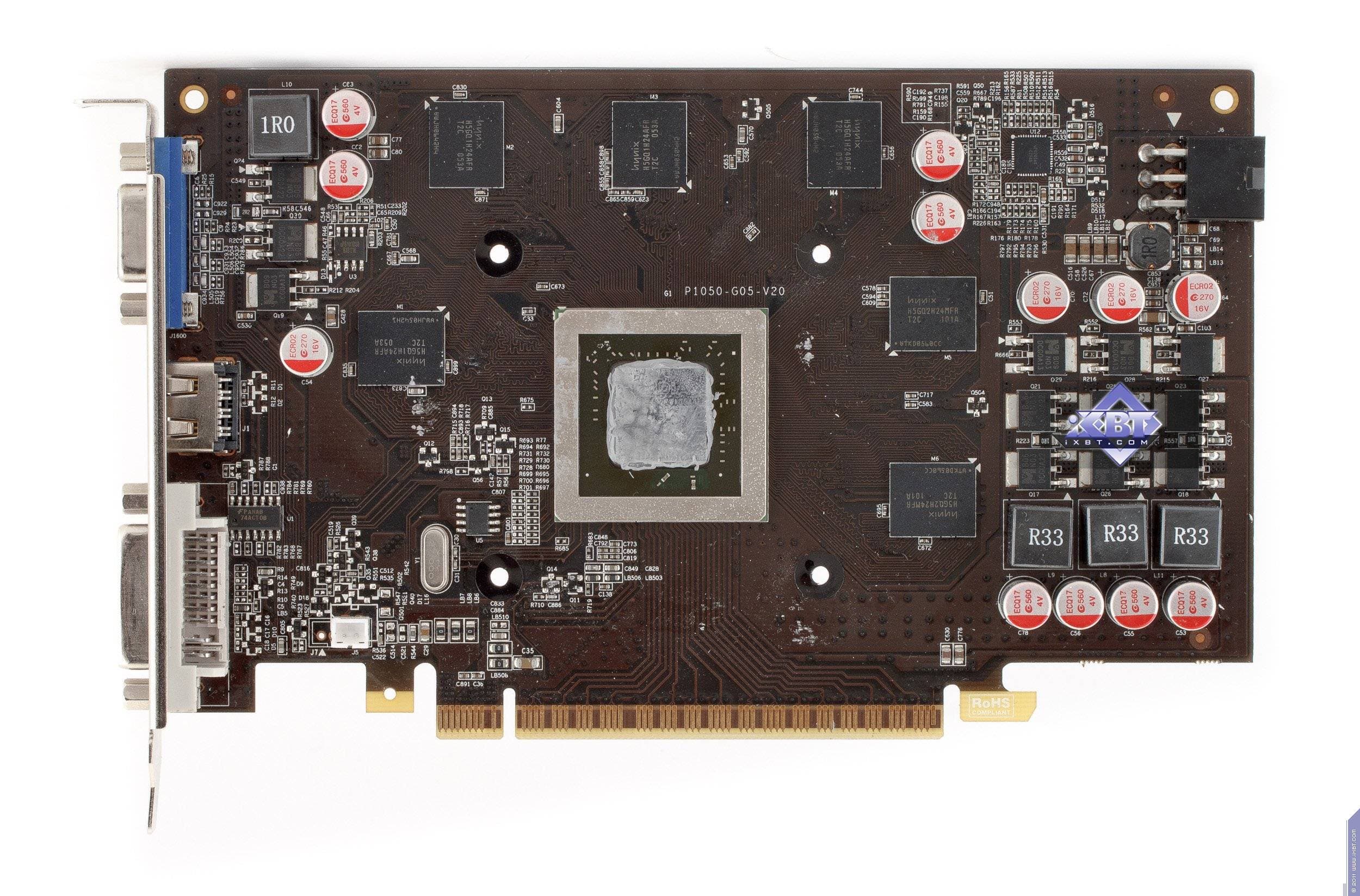 Карта имеет 1024 МБ памяти GDDR5 SDRAM, размещенной в восьми микросхемах на лицевой сторонe PCB. Микросхемы памяти Hynix (GDDR5). Микросхемы рассчитаны на максимальную частоту работы в 1250 (5000) МГц. | ![]() |