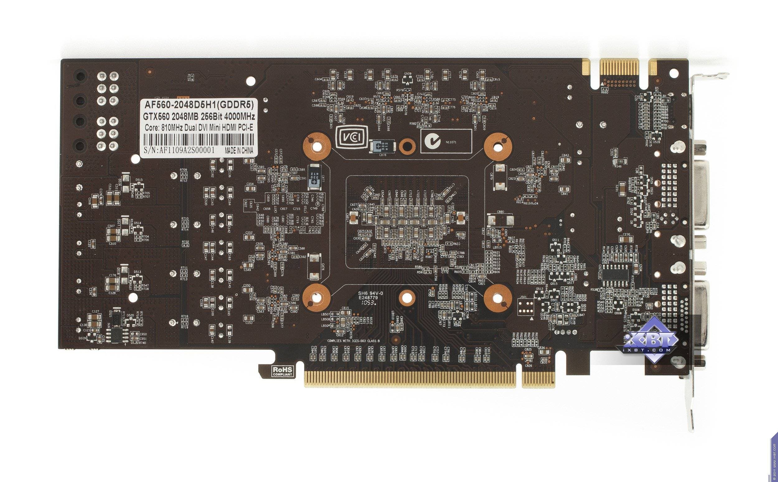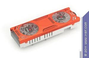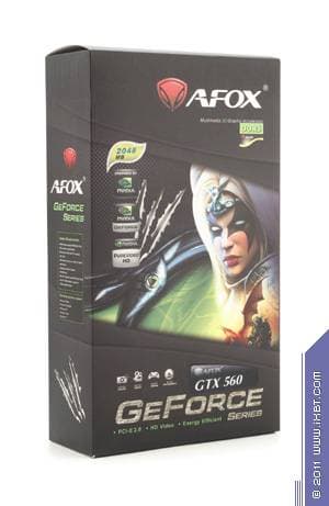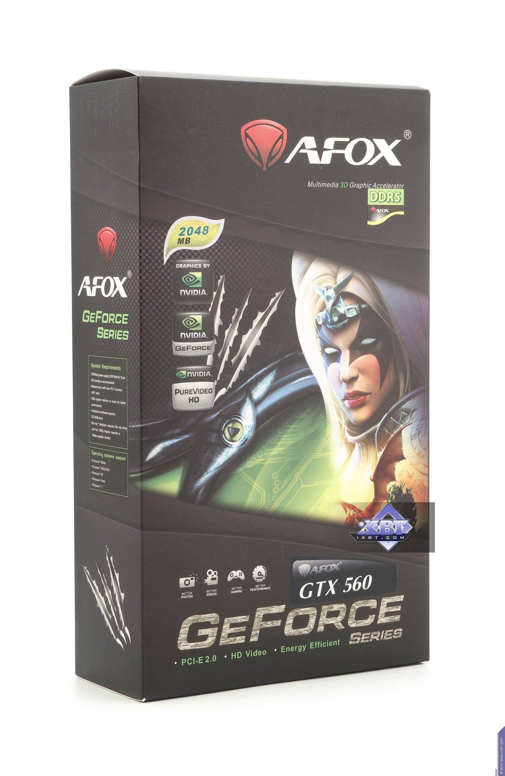 AFox Geforce GTX 560 (AF560-2048D5H1) 2048 МБ 256-битной GDDR5 PCI-E — продукт собственного дизайна, имеет бонус в виде 2 гигабайт памяти, однако тесты показали, что никаких реальных дивидендов такой объем не приносит. Впрочем, уже есть сведения, что новая мощная игра BattleField 3 задействует 2 гигабайта памяти даже у таких ускорителей. Вместе с тем у карты есть и очевидный минус в виде завышения минимальных оборотов кулера — который, к счастью, исправляется при помощи настроек в драйвере.