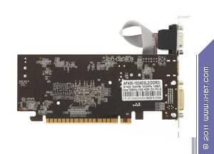 Что касается Geforce GT 430, то здесь мы также видим низкопрофильный дизайн, однако подобные варианты выпускают многие производители — карта низкобюджетная, производительность ее в 3D невелика, как и энергопотребление. Так что здесь особых новаций нет, однако отметим более низкие частоты по памяти, а также использование микросхем не GDDR3, а DDR3, имеющих более низкий частотный диапазон. Продукт имеет три гнезда выхода: DVI, VGA, HDMI. В общем-то, логично. Карта маломощная, потому вполне подойдет для использования в дешевых системных блоках, владельцы которых часто покупают дешевые ЖК-мониторы, имеющие вход d-Sub (VGA). Минус данной модели — толстый кулер, из-за которого карта занимает в системном блоке 1,5 слота, а значит, по сути два. Это автоматически накладывает серьезные ограничения на применение такой видеокарты в баребонах, например.