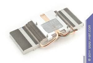 Итак, Radeon HD 6850. Компания AFox первой в мире предложила дизайн, не только предусматривающий отсутствие дополнительного питания (как известно, референс 6850 требует оного), но и резко уменьшивший карту по высоте, что позволяет использовать ее в низкопрофильных системах (любопытно расположение микросхем памяти: 6 штук на лицевой стороне, и 2 — на оборотной). В комплекте поставки есть соответствующие выводные планки для монтажа карты в десктопах и иных низкопрофильных корпусах. Особо следует иметь в виду, что такая видеокарта годится только тем пользователям, у которых материнские платы поддерживают PCI-E версии 2.0, то есть позволяют передавать через слот питание больше 75 Вт. Но у продукта есть и другой минус — система охлаждения, о которой я расскажу ниже. Карта снабжена двумя гнездами вывода: DVI (который позволяет выводить картинку и на мониторы с VGA-входом — через адаптер) и DP.