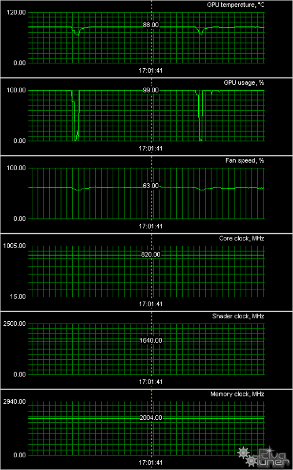 Мы провели исследование температурного режима с помощью утилиты MSI Afterburner (автор А. Николайчук AKA Unwinder) и получили следующие результаты: