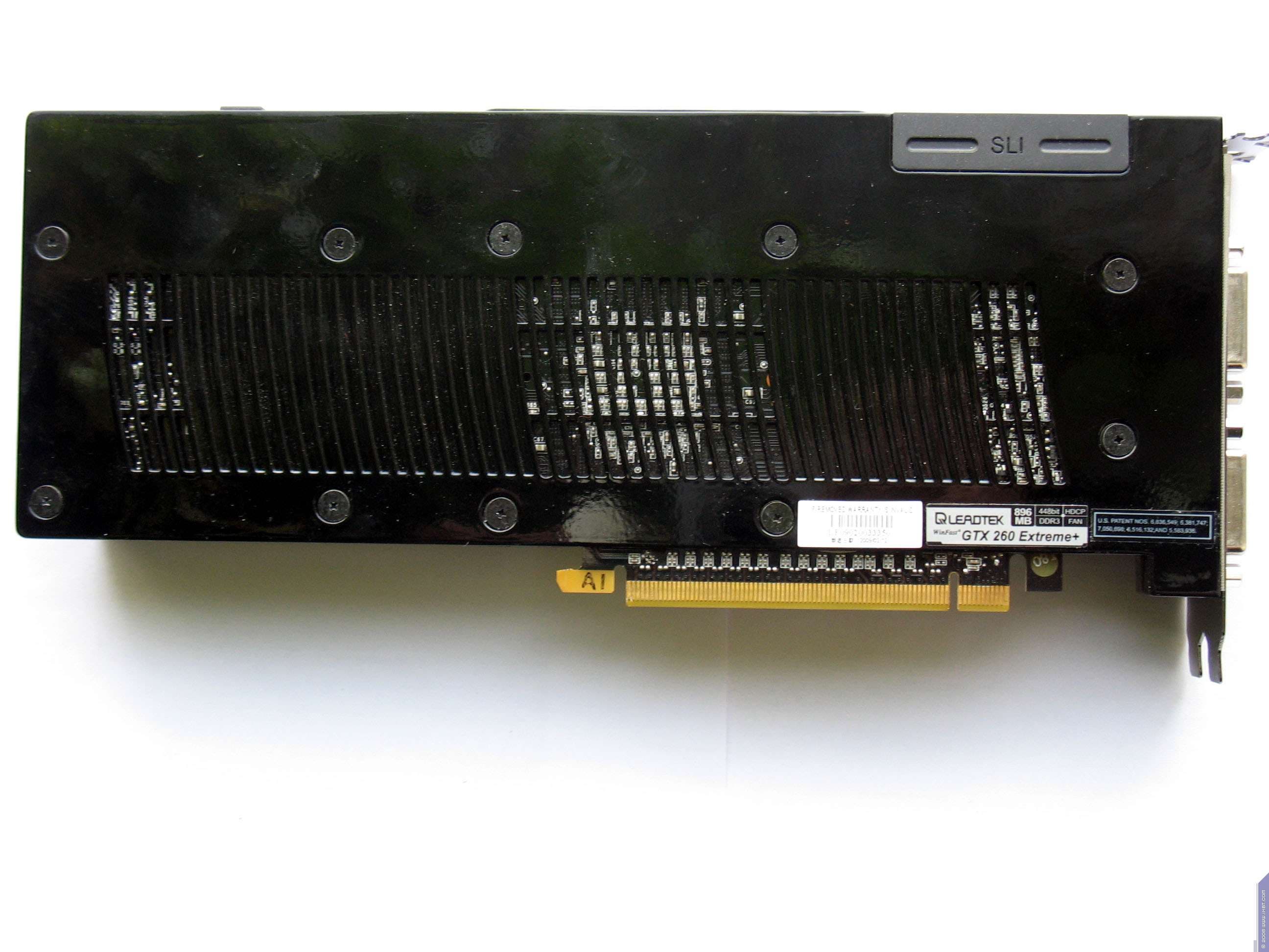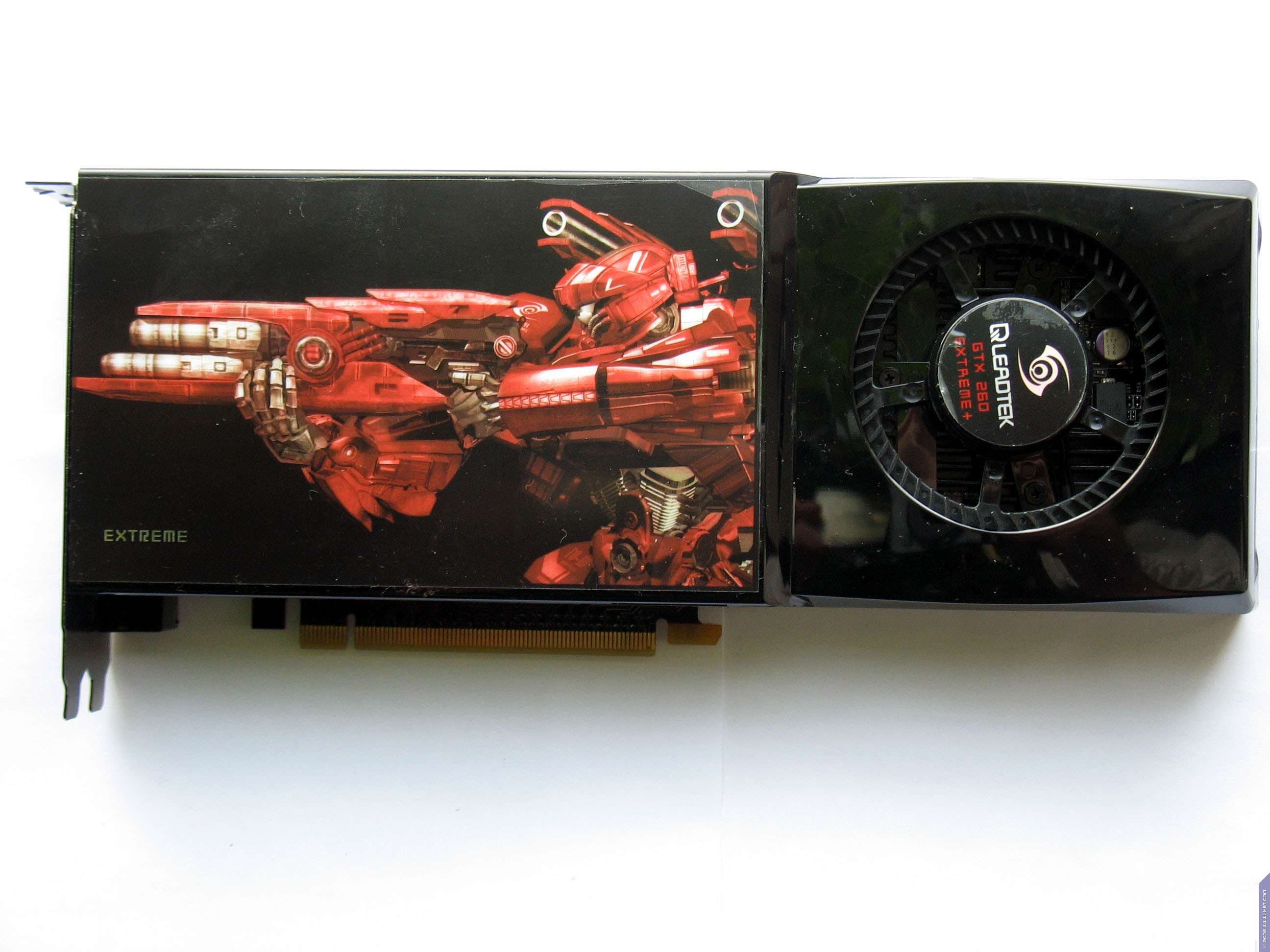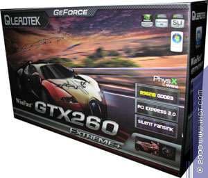 Однако, как ни странно, но ряд компаний продолжает поставлять на рынок GTX 260 с 216 процессорами, но на основе старой платформы: 512 бит PCB с нераспаянными двумя микросхемами памяти (урезающих шину обмена с памятью до 448 бит), и размещением памяти по обеим сторонам PCB, когда карты представляют собой сплошной наглухо закрытый панцирь (это все началось с GTX 280). Одна из таких карт — от Leadtek. Название Extreme означает вовсе не разгон, а то, что у ядре не 192, а 216 процессоров. А «+» в конце названия как раз показывает, что продукт имеет слегка повышенные частоты. Да, вначале такое название сбивает с толку, думаешь, что ускоритель очень сильно разогнан. Но факты говорят об обратном.