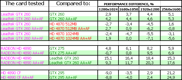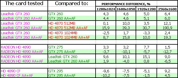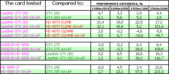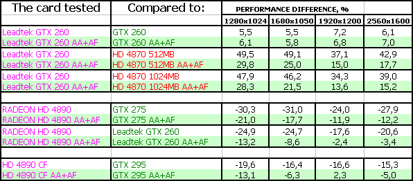 Leadtek WinFast GTX260 Extreme+ 896MB PCI-E, XFX RADEON HD 4890 1024MB PCI-E