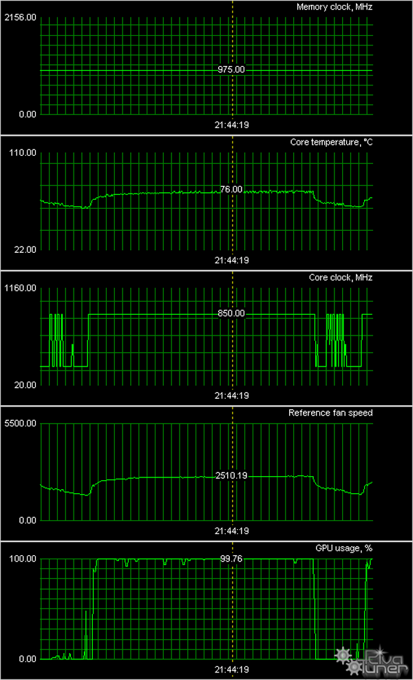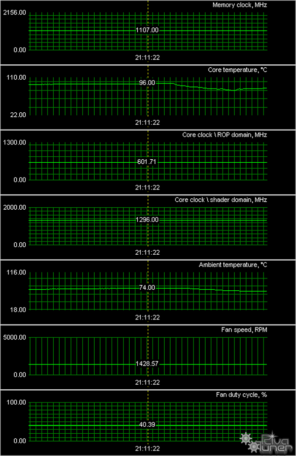 Для всех карт мы провели исследование температурного режима с помощью утилиты RivaTuner (автор А.Николайчук AKA Unwinder) и получили следующие результаты: