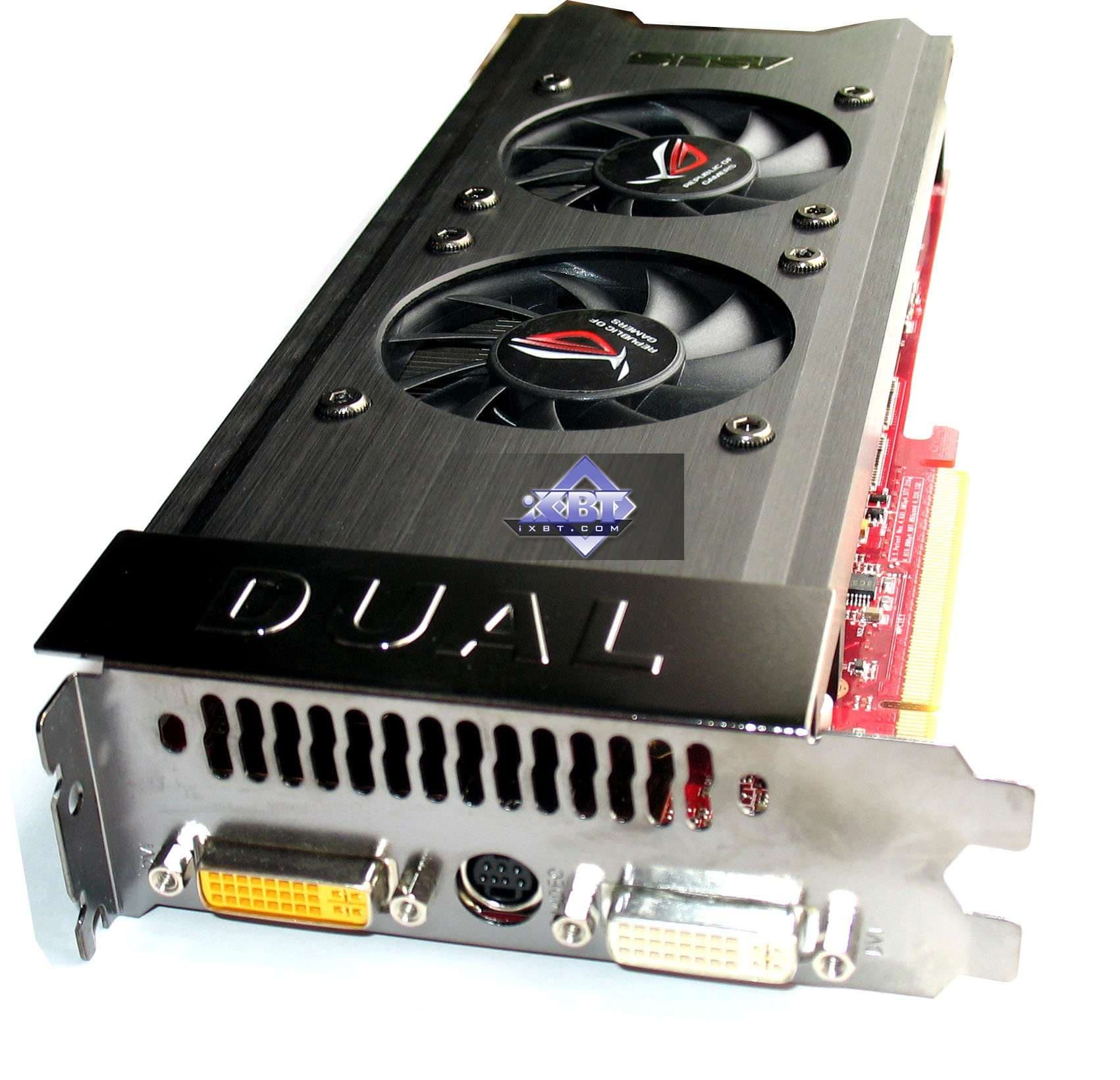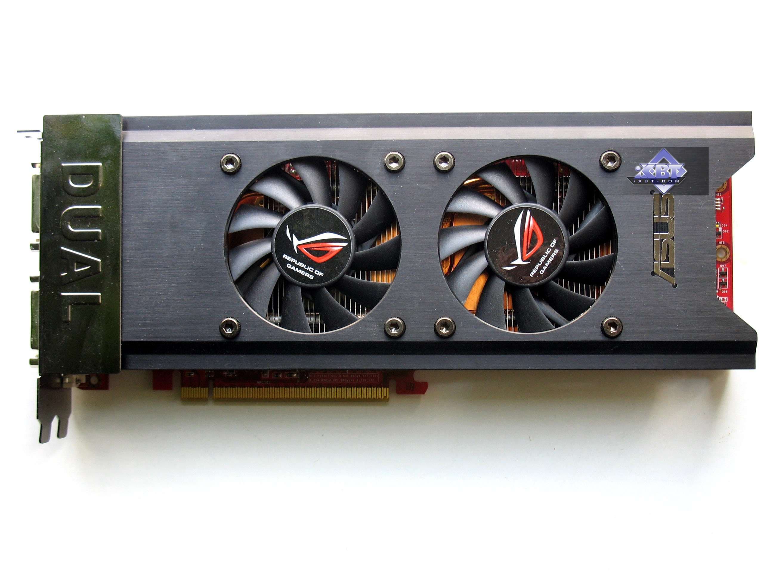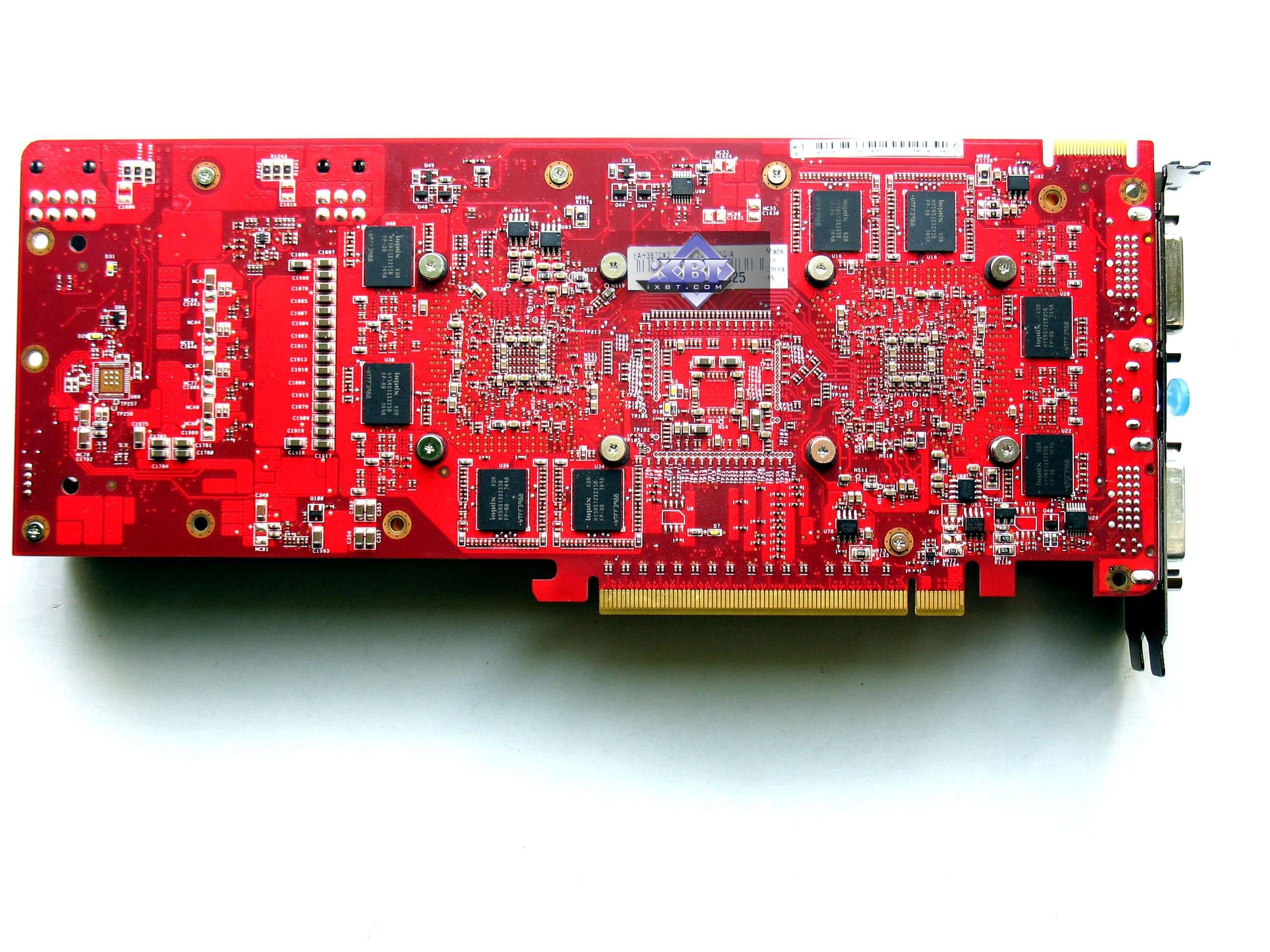 Карта 3850 X2 является полной копией своего более старшего аналога 3870 X2 от Asus, который мы уже изучали. Это продукт плода долгих размышлений инженеров Asus, сделавшего монстра с 4 разъемами (2 GPU по 2 вывода — никто не мешает все распаять), с не очень приятным кулером в плане шума. После миграции сего создания в 3850 X2 карта потеряла два дополнительных гнезда DVI (на PCB есть места для распайки соответствующих гнезд), а также кулер стал тише, ибо частоты сильно упали. Все остальное то же самое.