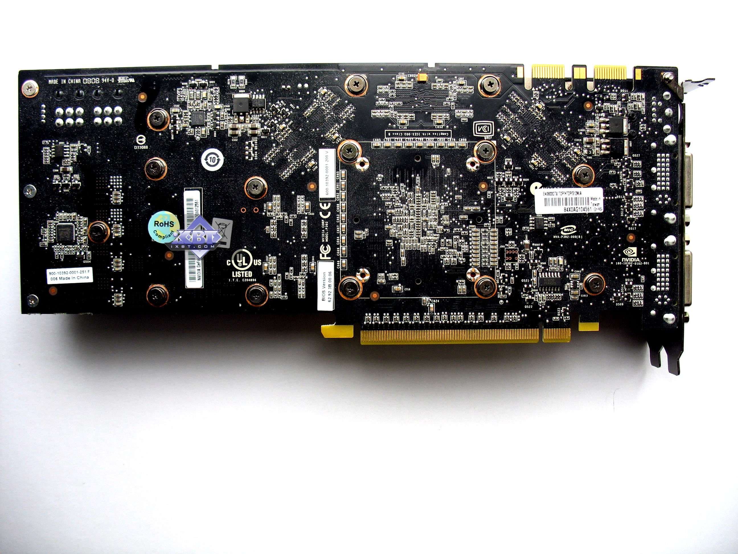 Как мы уже говорили выше, копиями референс-карт являются только 9800 GX2 и 9800 GTX, поэтому не будем подробно на них останавливаться, поскольку уже ранее изучали 9800GX2, как и 9800 GTX. Напомним лишь, что у данных продуктов от Asus повышены частоты работы. Что это дало — посмотрим далее при анализе производительности. А остальные платы весьма интересны.