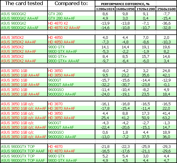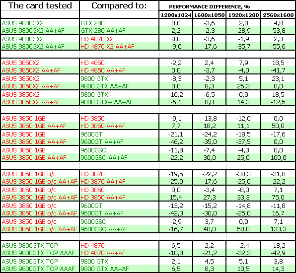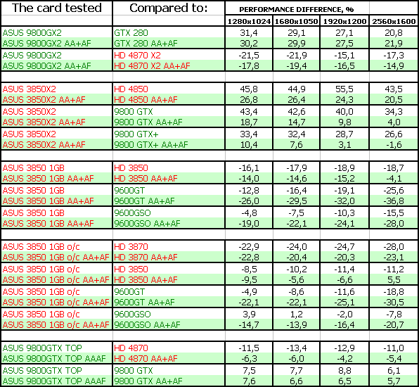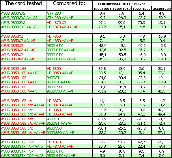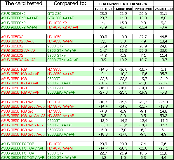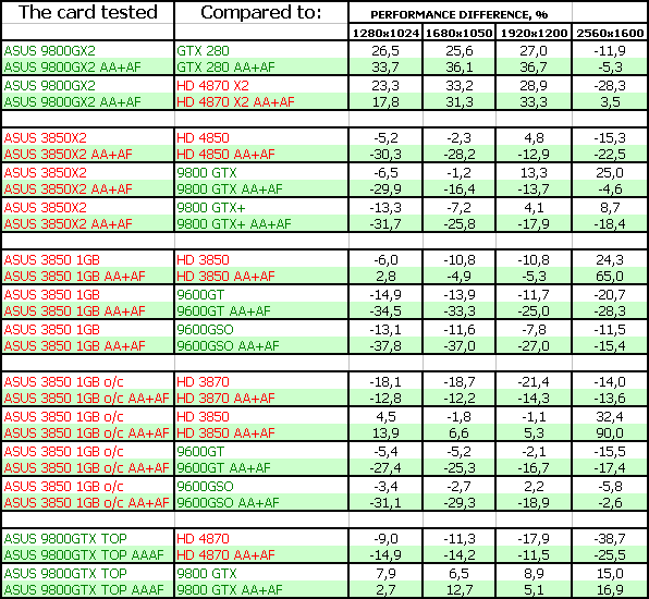 В данном материале мы собрали пять ускорителей от Asus, четыре из которых уникальны и созданы именно компанией (ее инженерами), а Geforce 9800 GX2, понятное дело, никто не сможет и не будет пробовать создать самостоятельно (да и нет нужды), поэтому представлен референс, но с повышенными частотами работы.