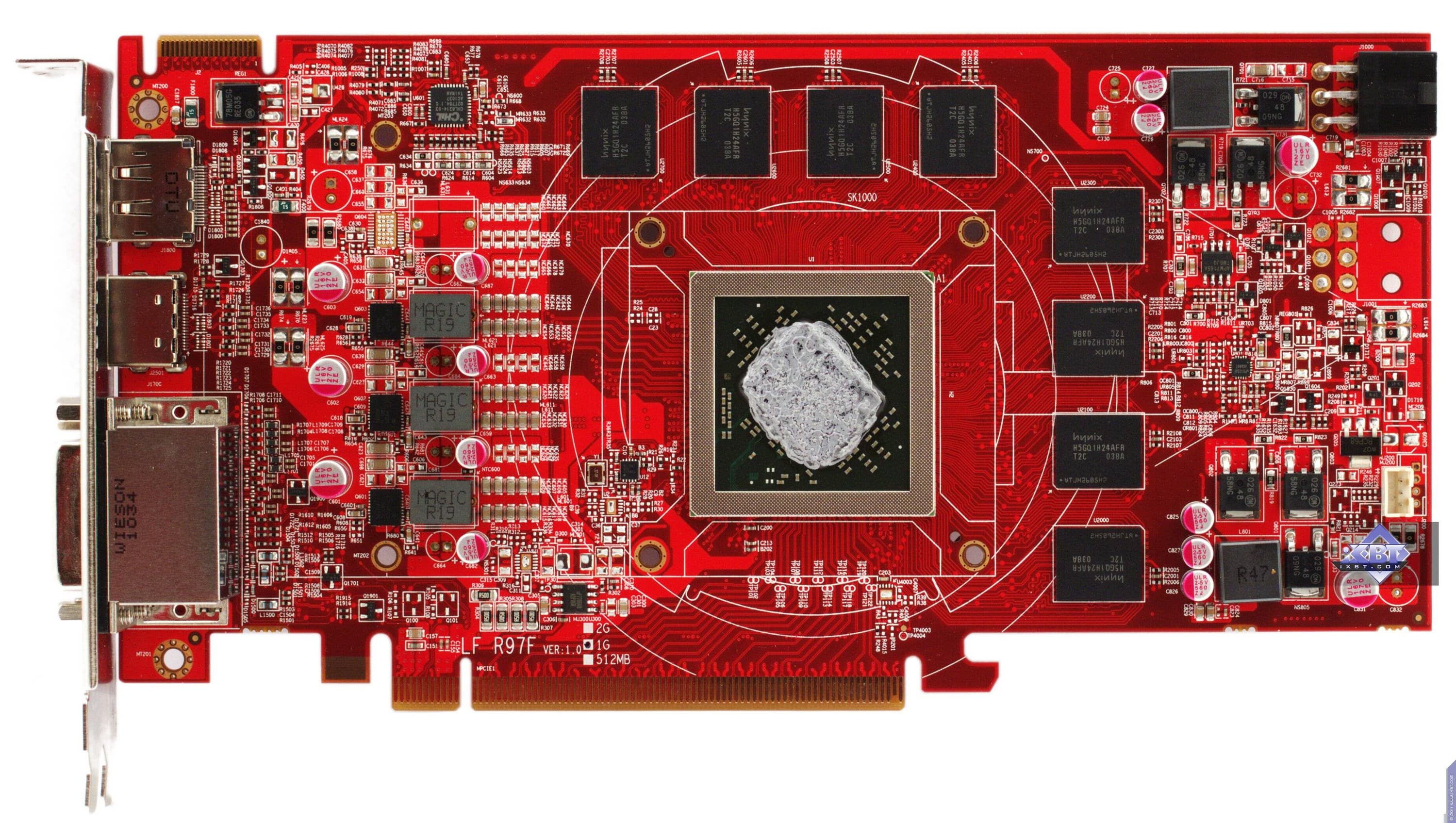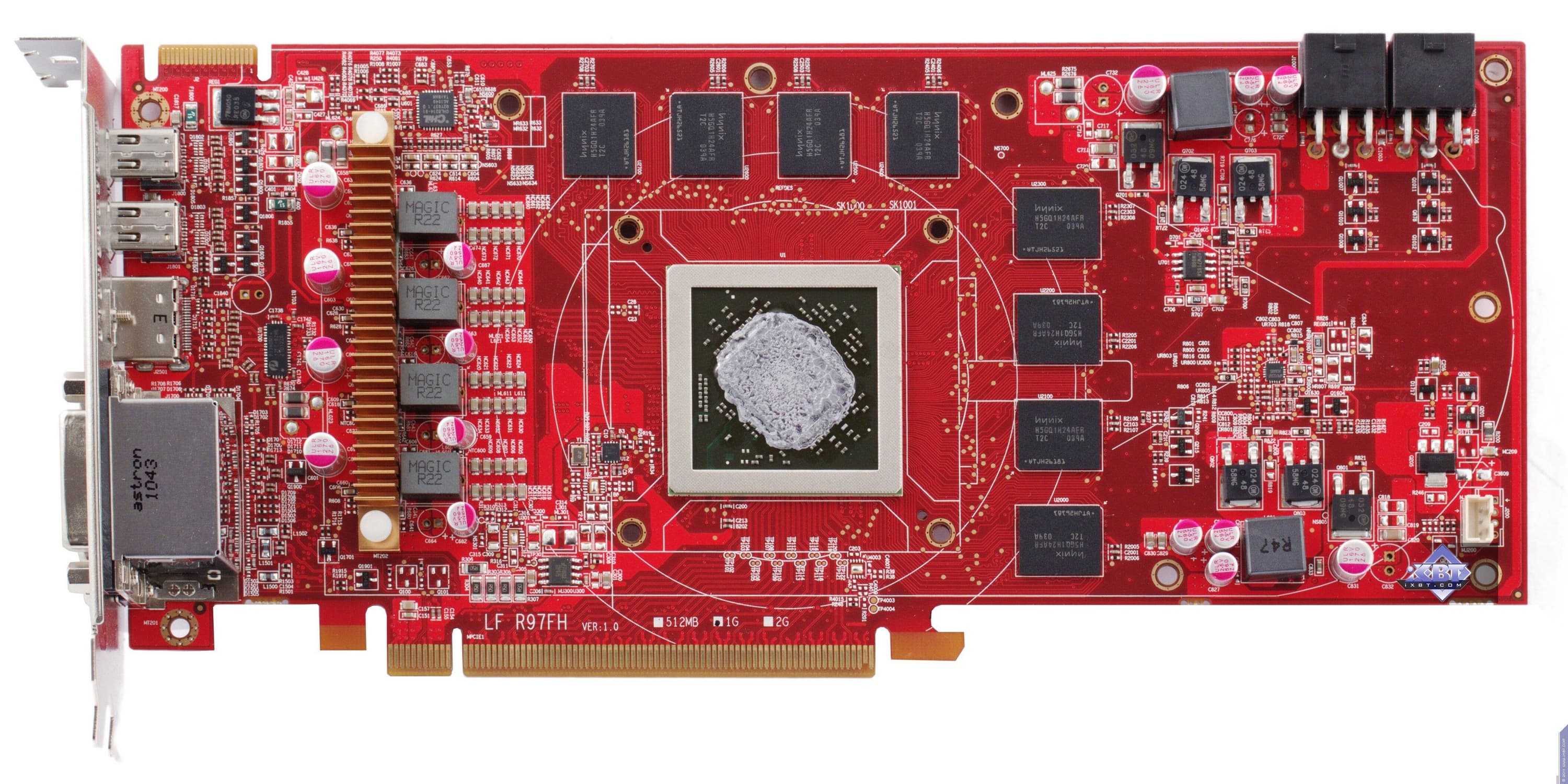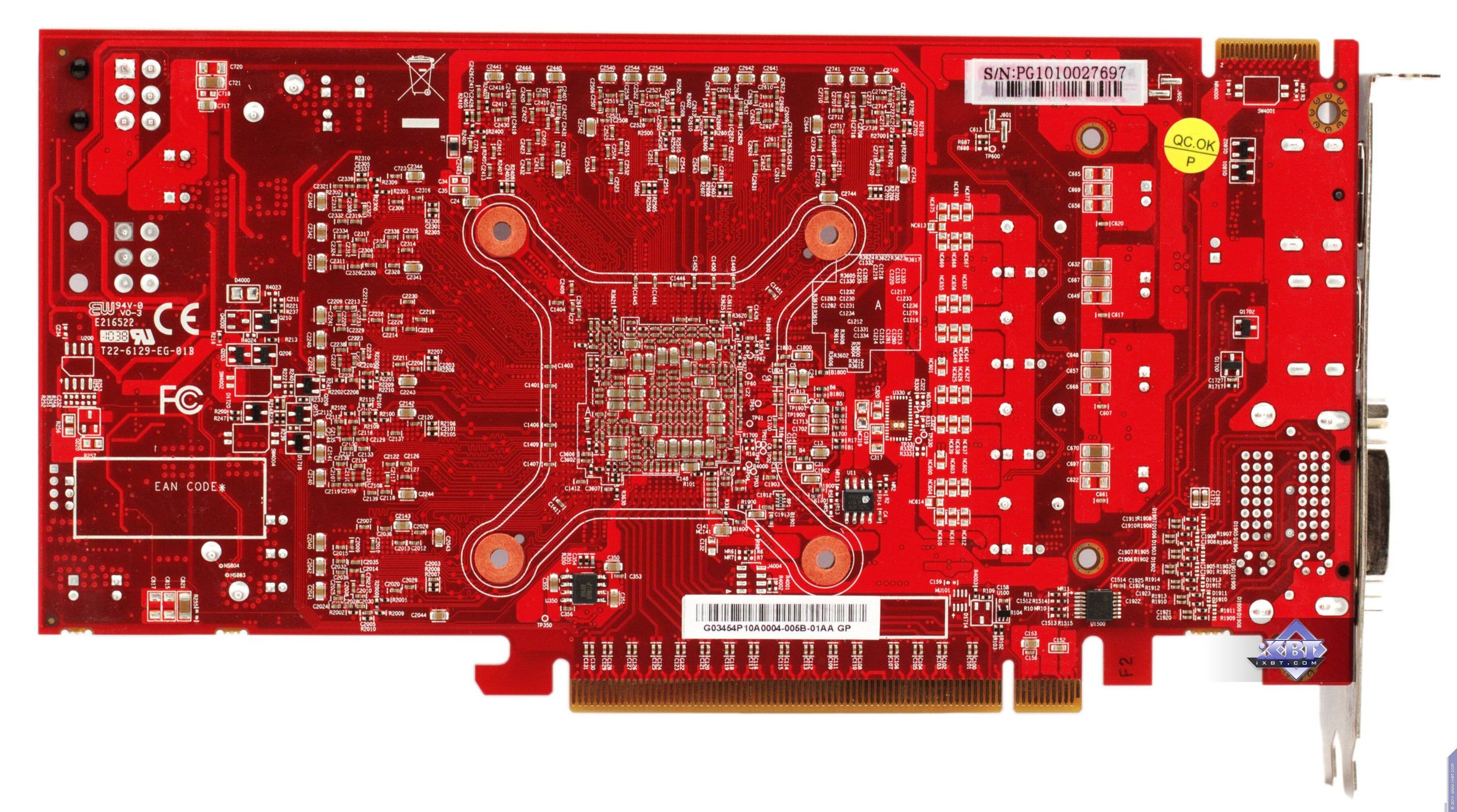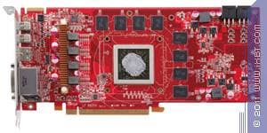 Каждая карта имеет 1024 МБ памяти GDDR5 SDRAM, размещенной в восьми микросхемах на лицевой сторонe PCB. Микросхемы памяти Hynix (GDDR5). Микросхемы рассчитаны на максимальную частоту работы в 1250 (5000) МГц. | ![]() |