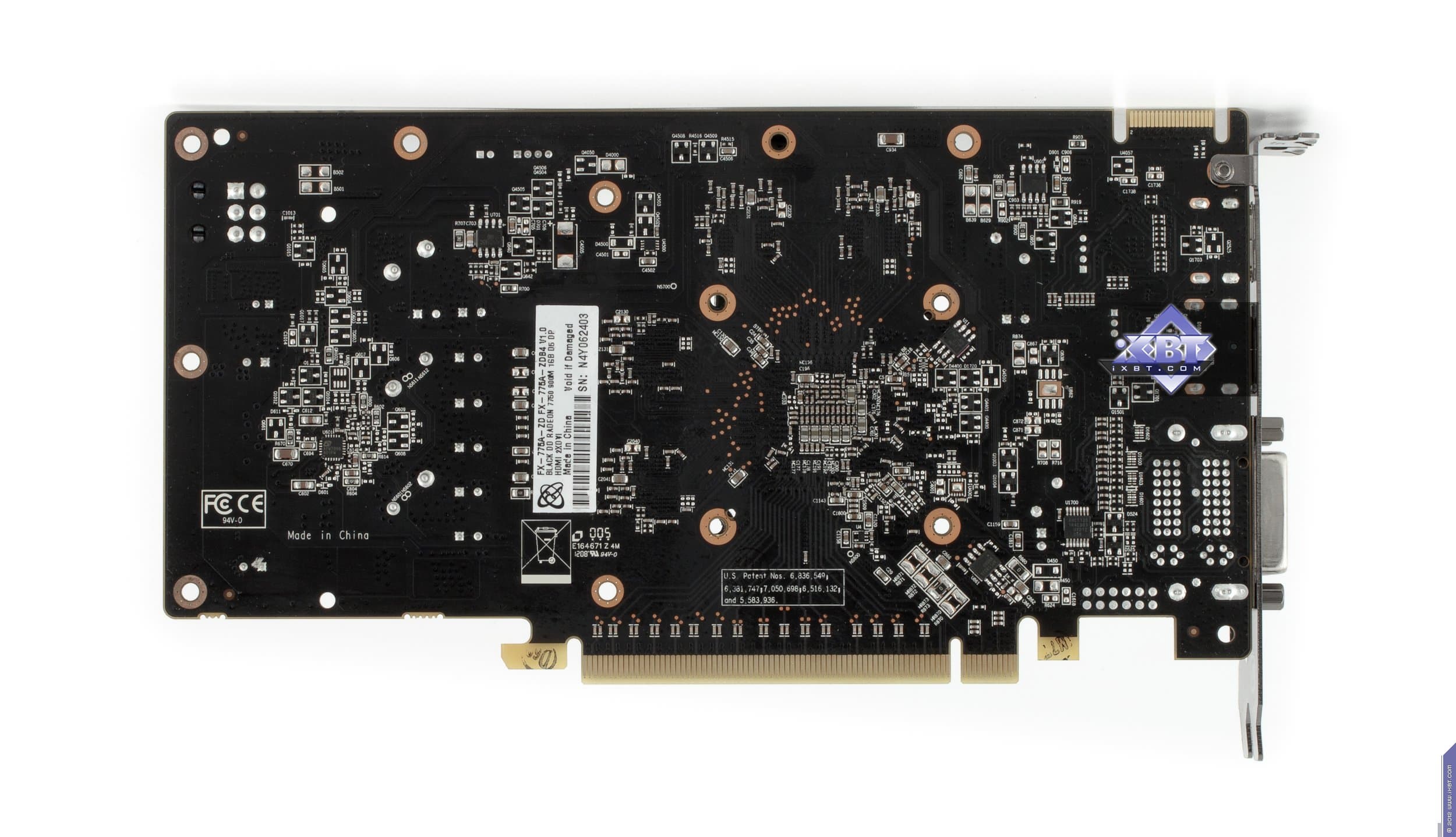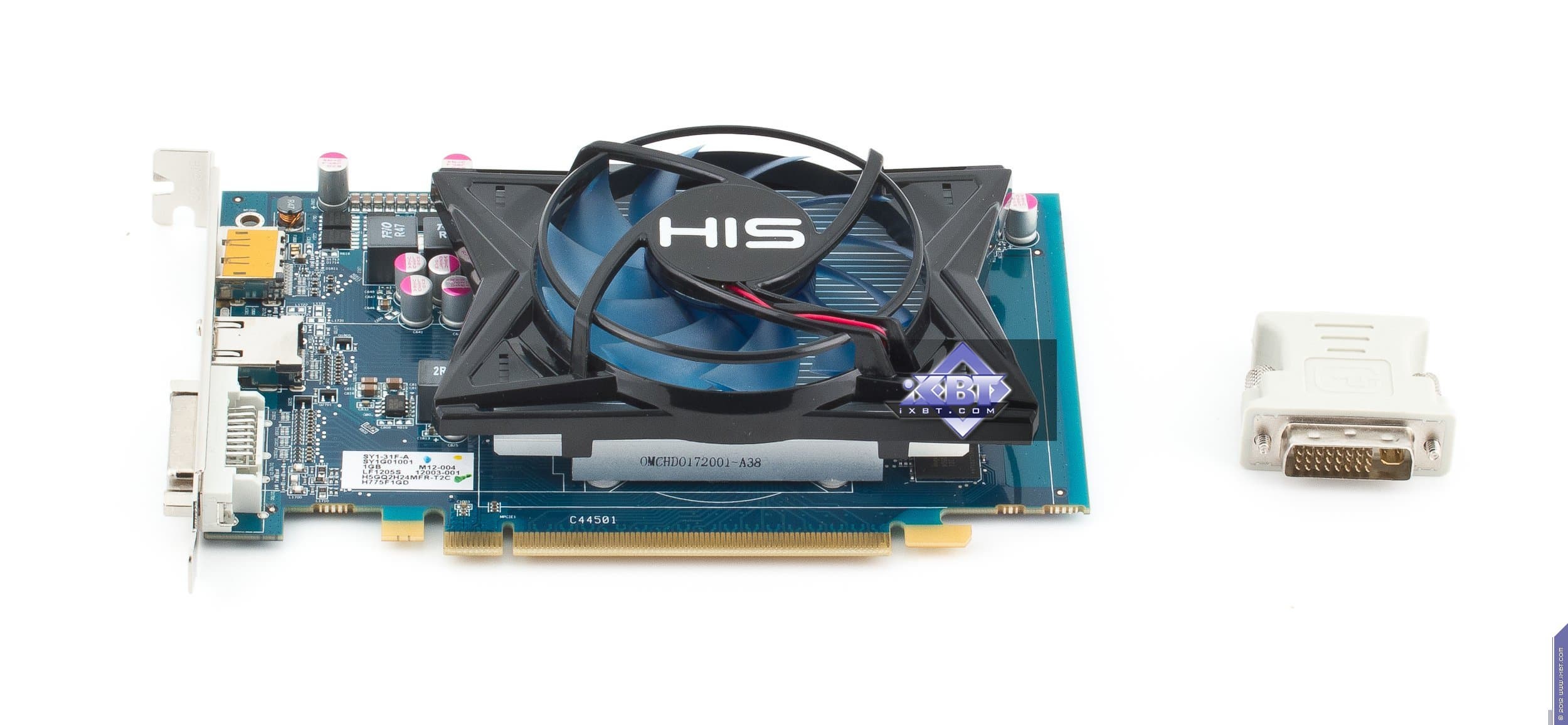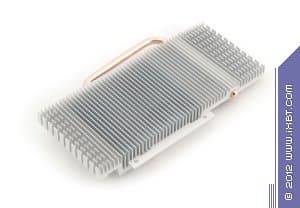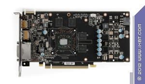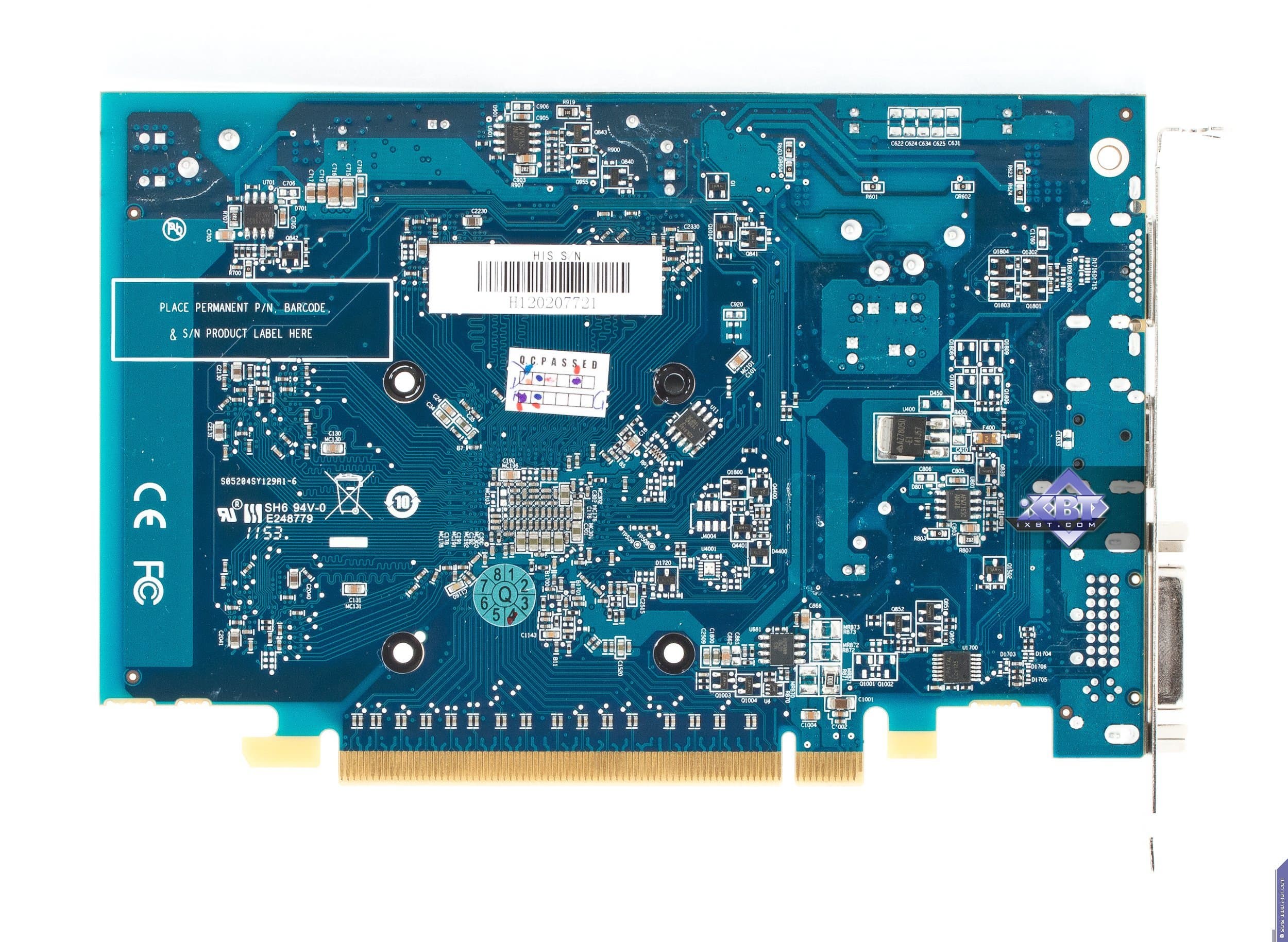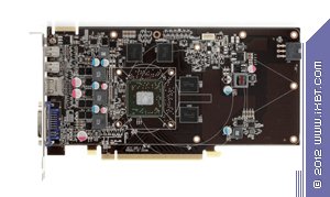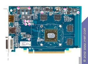 А сейчас кинем взгляд на HD 7750 и начнем с HIS Radeon HD7750 1024 МБ 128-битной GDDR5 PCI-E. Хорошо видно, что плата хоть и собственного производства, но полностью копирует эталонный дизайн. Да и карта сама по себе весьма проста, ведь уже не требуется внешнего дополнительного питания, и системы охлаждения в данном случае будут сильно проще, в общем 7750 имеет более компактные размеры, нежели 7770. Ускоритель уже не обладает разъемами для моста CrossFire, технология хоть и работает, но уже не аппаратно, а только через драйверы (синхронизация идет через шину PCI-E). Гнезда вывода также отличаются от 7770. Мы видим уже только три гнезда: DVI (Dual-Link, имеющий возможность вывода на HDMI и d-Sub через переходники), HDMI 1.2 и полноформатный Display Port 1.4.