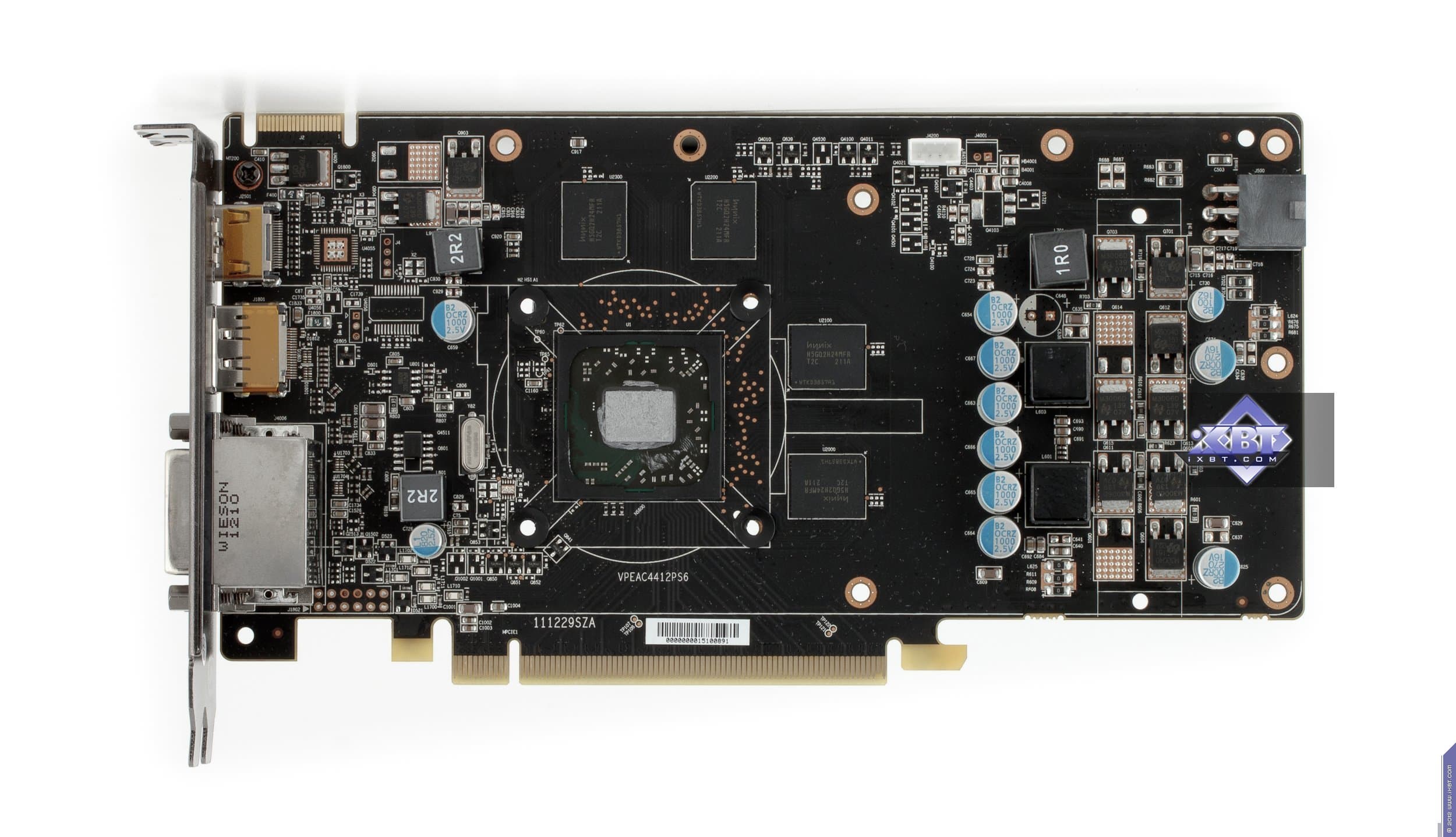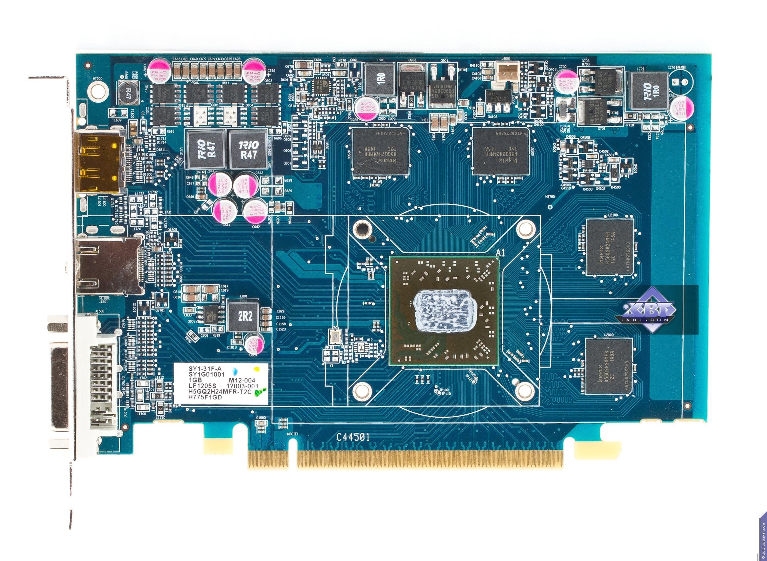 Карта имеет 1024 МБ памяти GDDR5 SDRAM, размещенной в 4 микросхемах на лицевой сторонe PCB. Микросхемы памяти Hynix (GDDR5). Микросхемы рассчитаны на максимальную частоту работы в 1250 (5000) МГц. | ![]() |