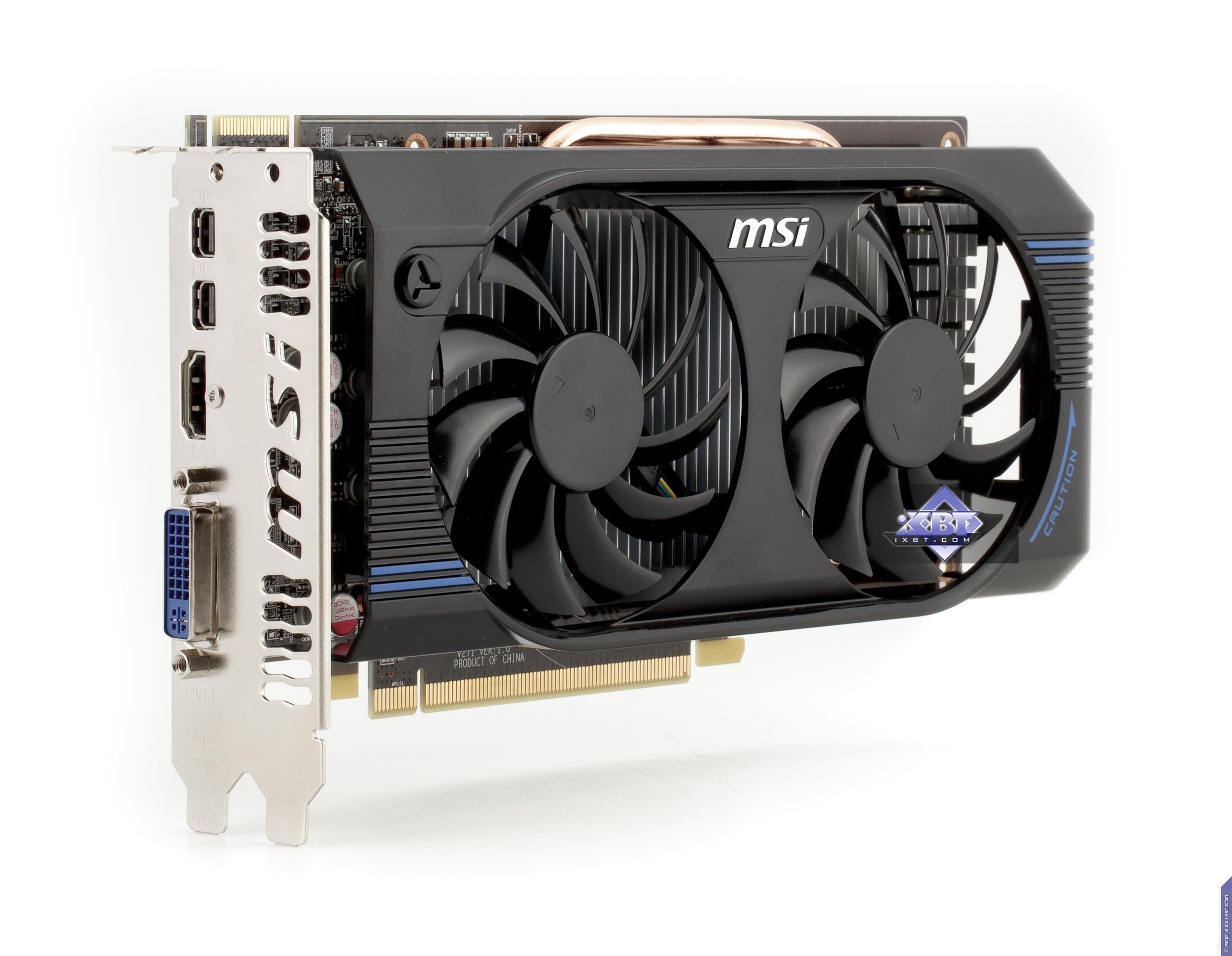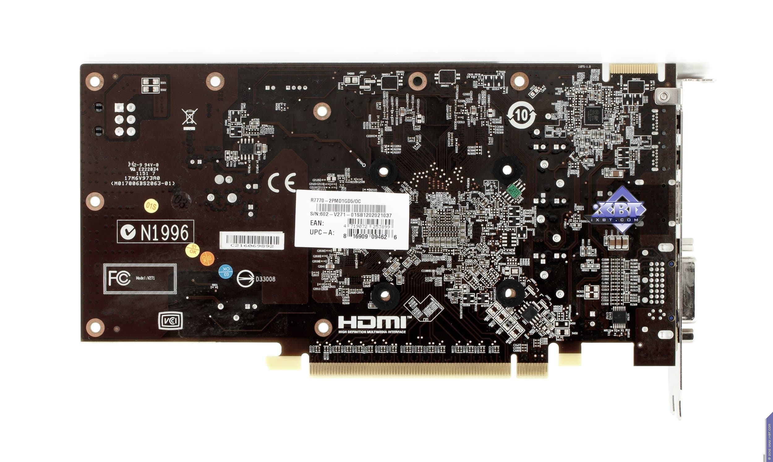Теперь про MSI Radeon HD7770 OC Edition 1024 МБ 128-битной GDDR5 PCI-E. Как мы видим, это снова копия эталонного дизайна, хотя, опять же, PCB выполнена своими силами и имеет свою маркировку. Поэтому незачем дальше описывать, все аналогично предыдущему продукту.