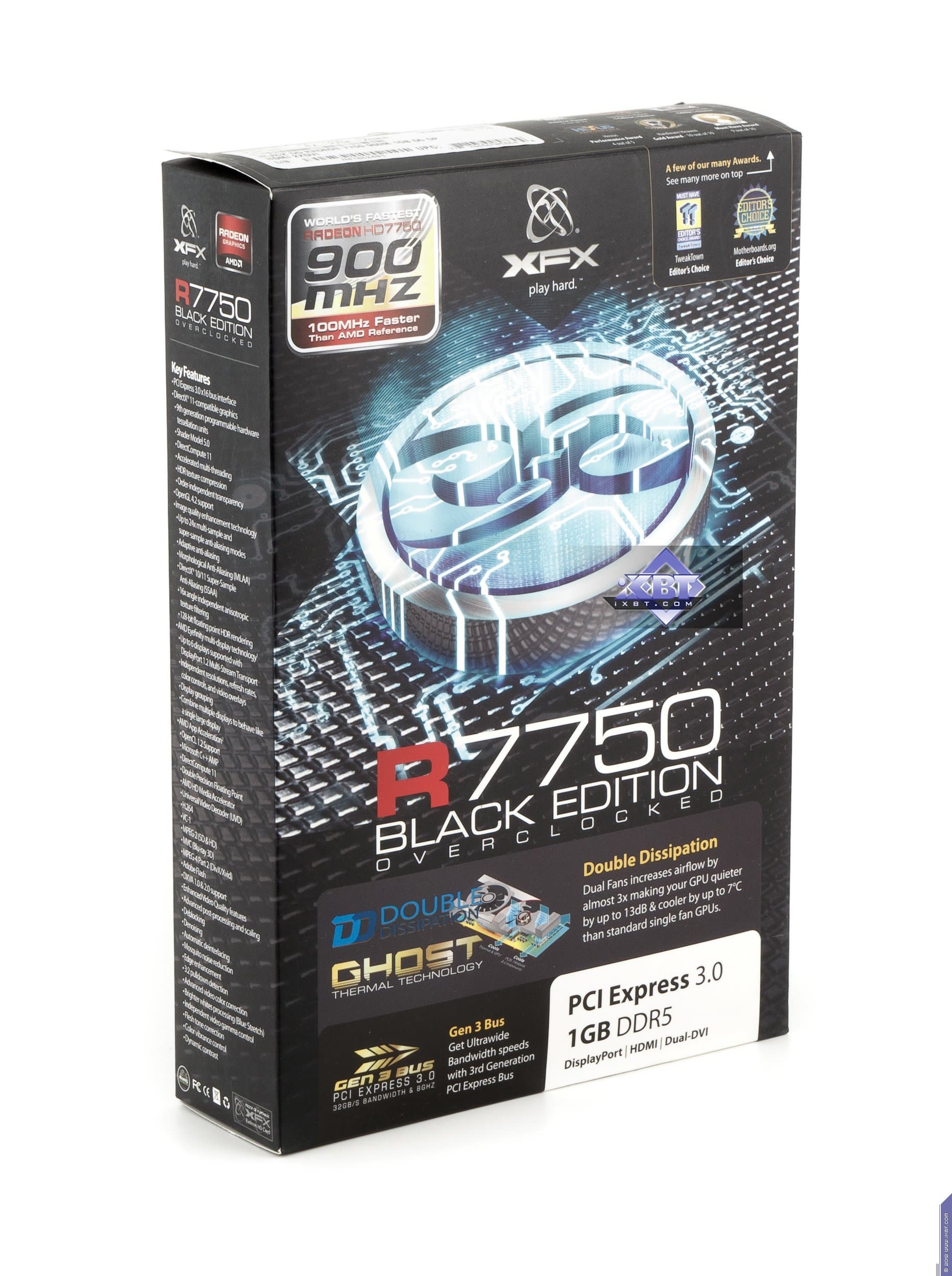 XFX Radeon HD7750 Black Edition 1024 МБ 128-битной GDDR5 PCI-E — продукт, претендующий на то, чтобы догнать более дорогой 7770, имеющий все данные для этого, позволяющий разгон до 1100 МГц и выше по ядру. Несмотря на небольшой шум СО, мы все же имеем положительные впечатления от данного акселератора.
