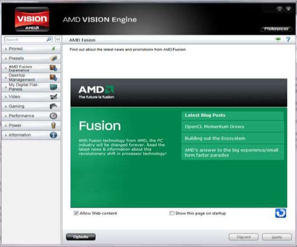 Интересно, что панели настроек AMD теперь называются по-новому. Компания хочет продвигать свои новые марки, такие как VISION, поэтому для систем на базе CPU+GPU и APU производства AMD панель настроек называется AMD VISION Engine Control Center. В системах, основанных на центральных процессорах производства других компаний, название останется прежним — AMD Catalyst Control Center. Ну а для сегмента рабочих станций с решениями AMD FirePro и AMD FireStream в их составе, панель будет называться AMD Catalyst Pro Control Center.