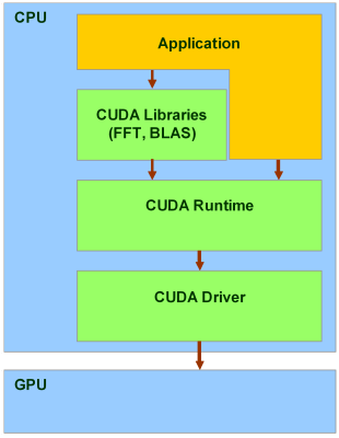 CUDA включает два API: высокого уровня (CUDA Runtime API) и низкого (CUDA Driver API), хотя в одной программе одновременное использование обоих невозможно, нужно использовать или один или другой. Высокоуровневый работает «сверху» низкоуровневого, все вызовы runtime транслируются в простые инструкции, обрабатываемые низкоуровневым Driver API. Но даже «высокоуровневый» API предполагает знания об устройстве и работе видеочипов Nvidia, слишком высокого уровня абстракции там нет.